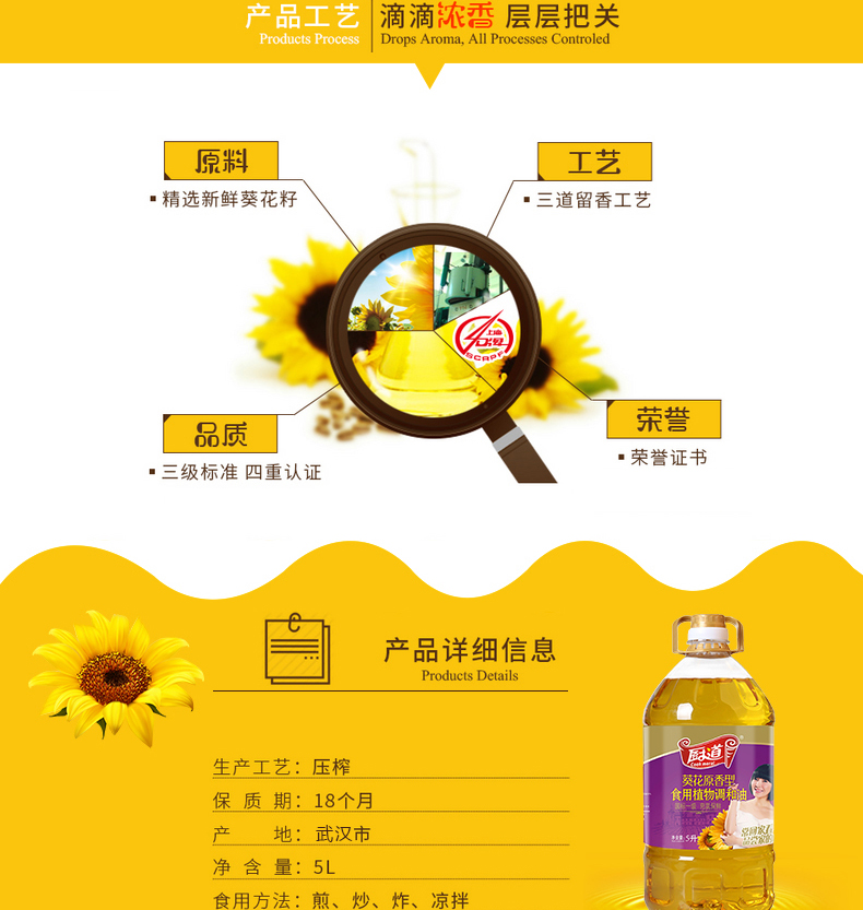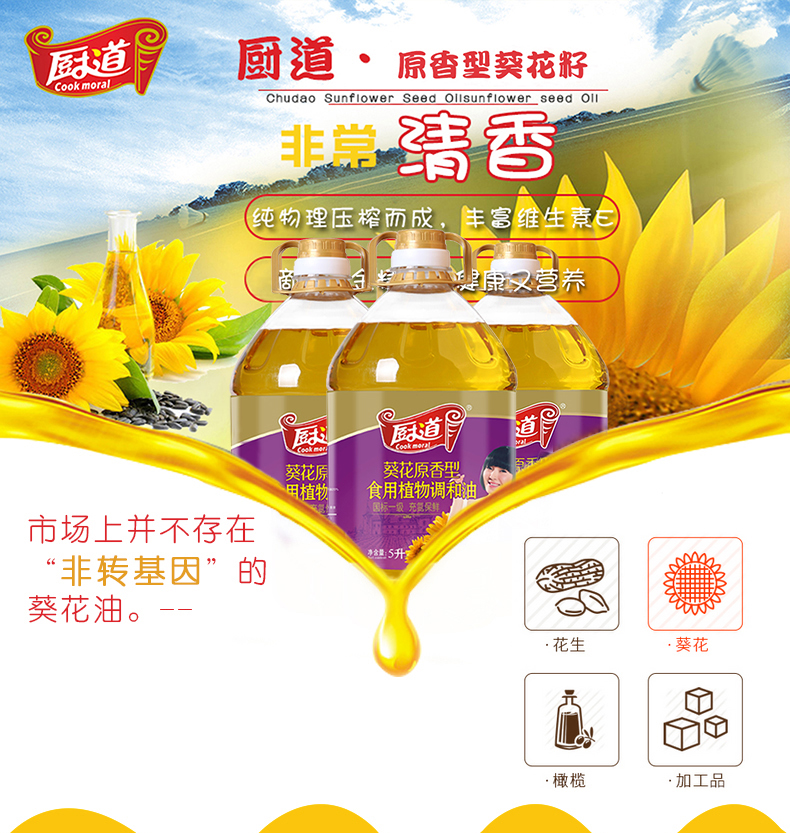 (乡村振兴商品)厨道 葵花原香调和油5L 商品图2