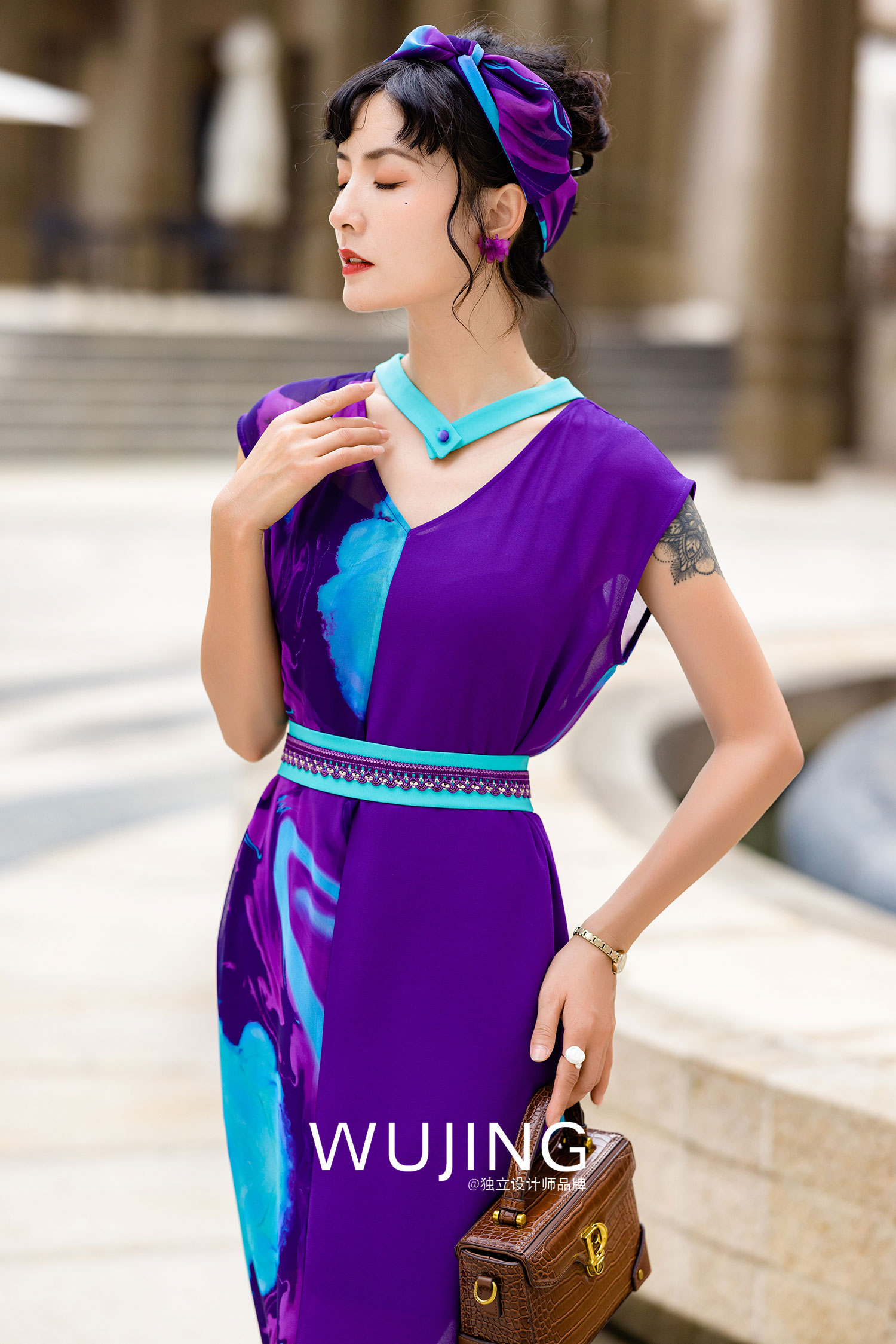 3022086 露红烟紫 薰衣草紫连衣裙 雾境
