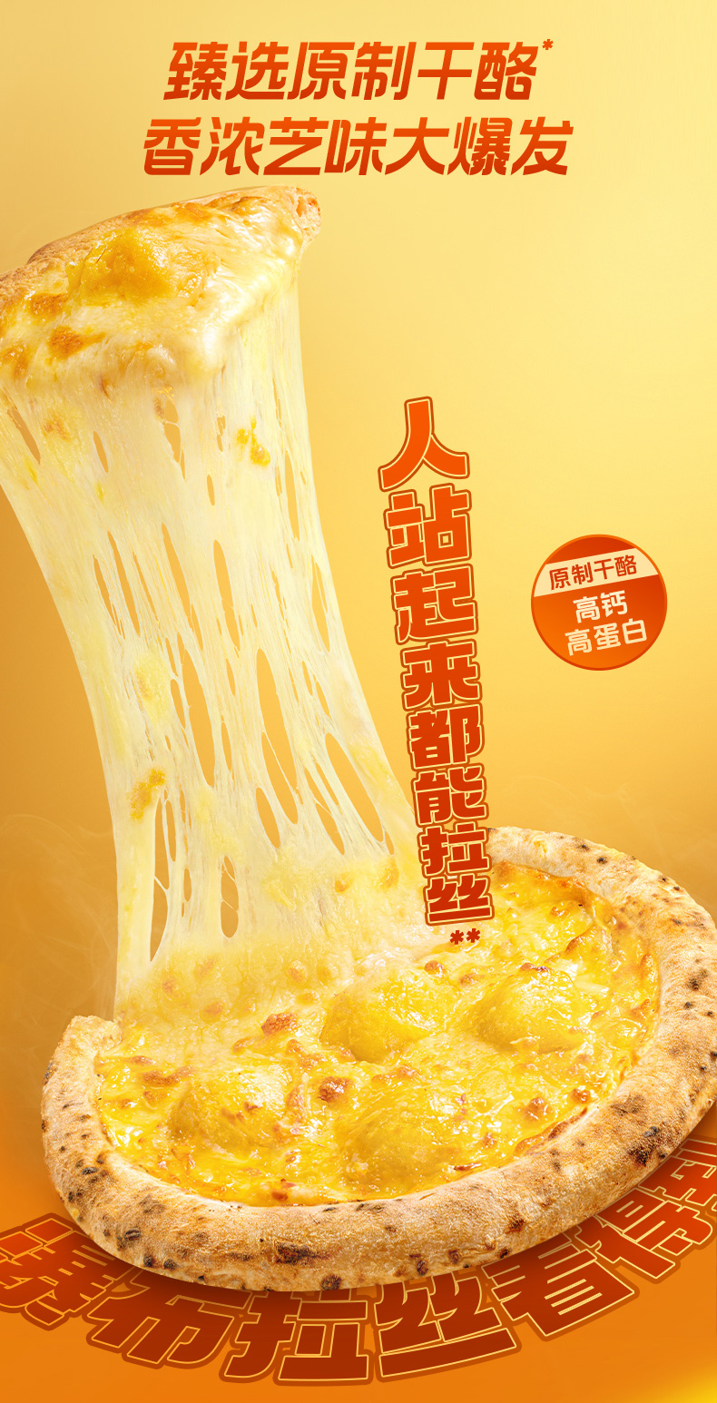 采用原制干酪替代再制芝士,奶香浓郁,芝士拉丝长达数厘米;