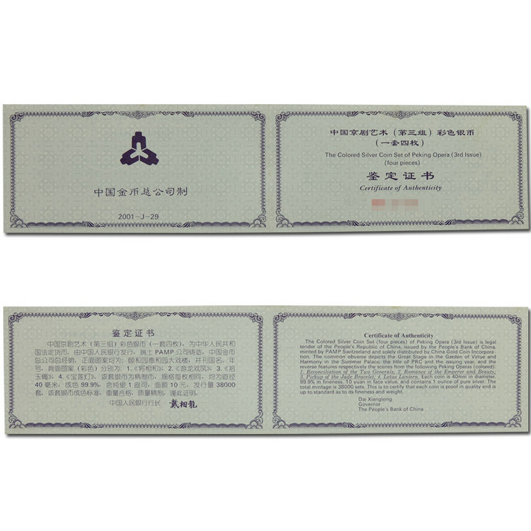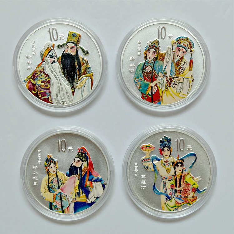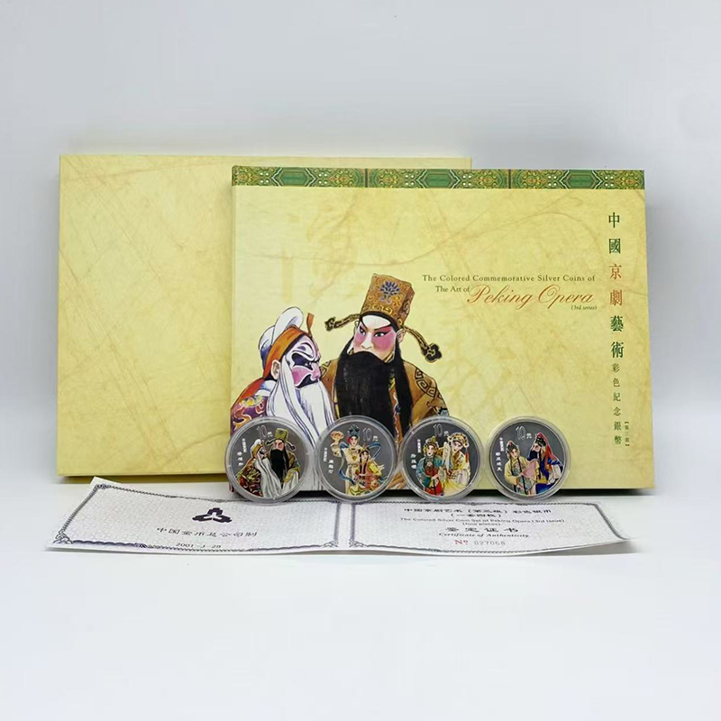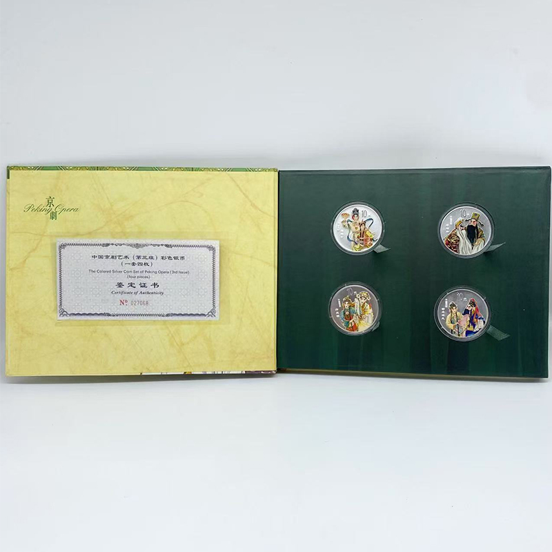 【特惠 老精稀】中国京剧艺术彩色银币(第3组)1盎司*4枚 原盒带证品相好