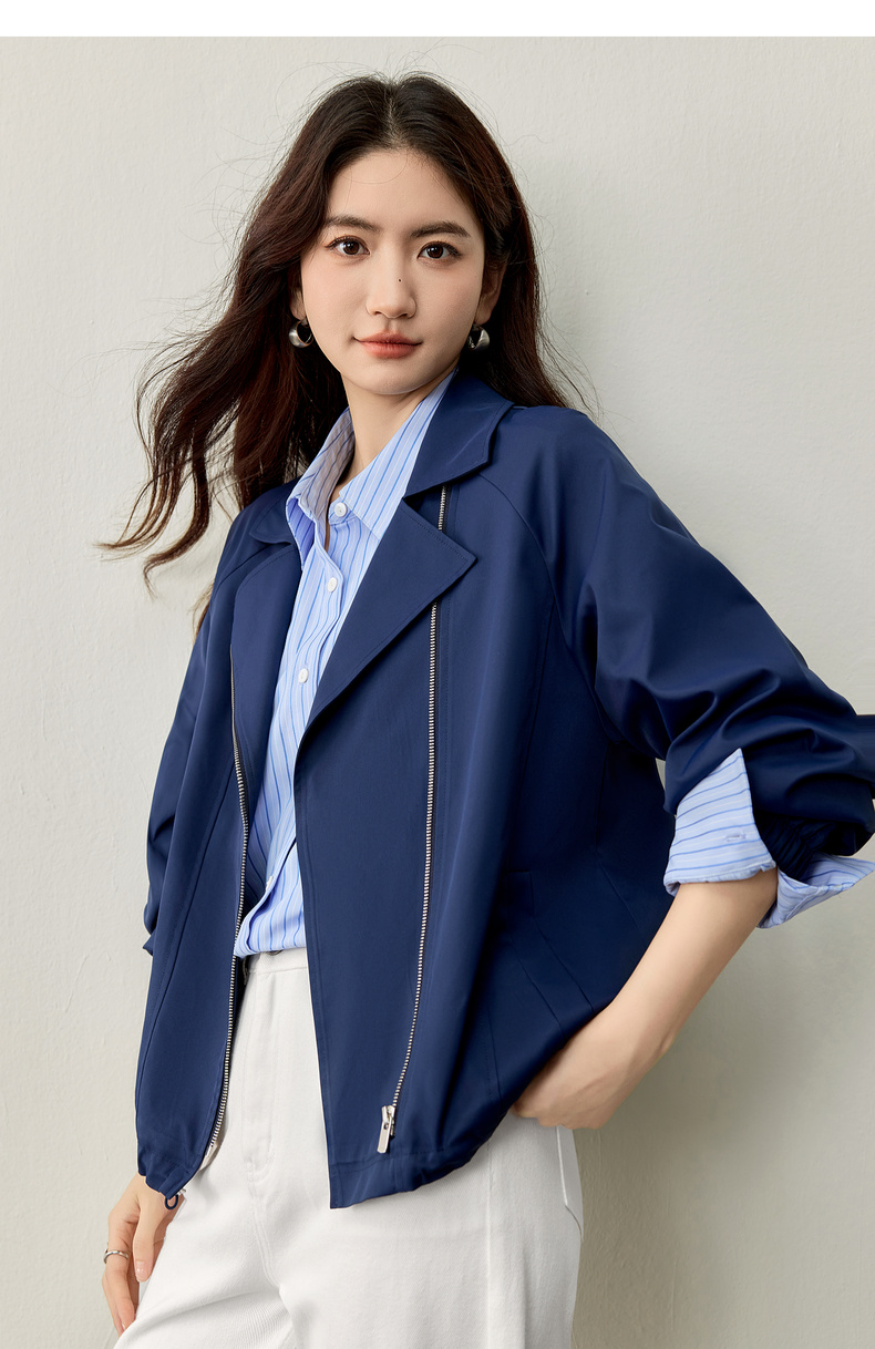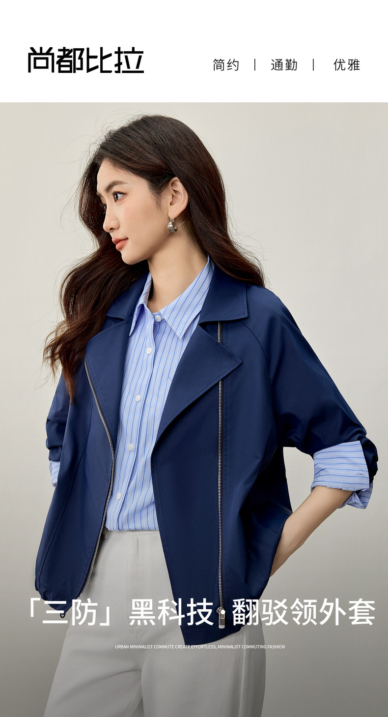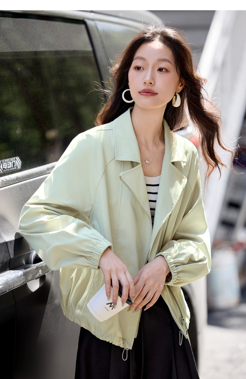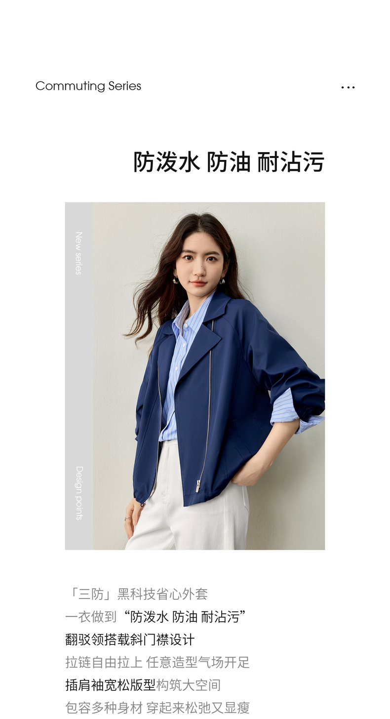 【内购】【防污防油防水】简约通勤翻驳领斜门襟可调节抽绳宽松插肩袖外套-153WB2106