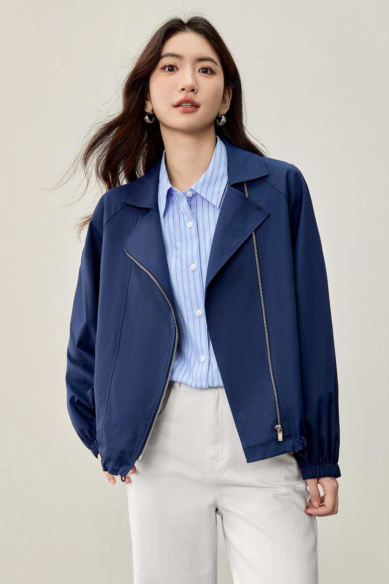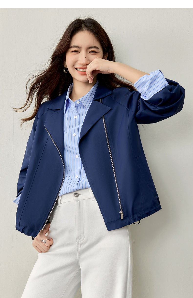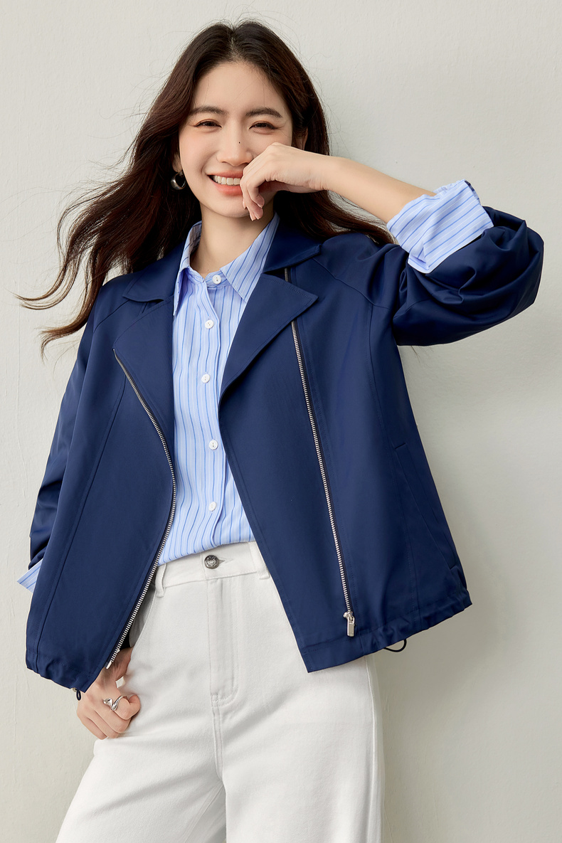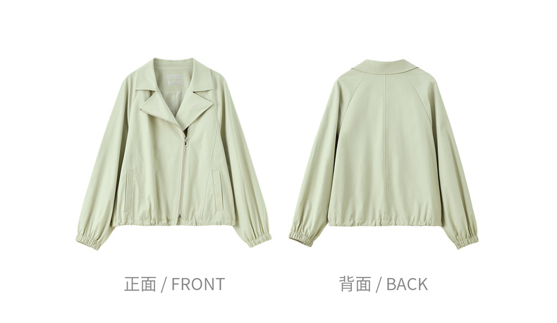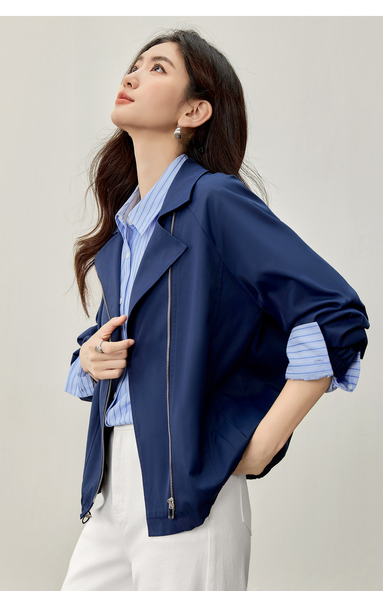 【内购】【防污防油防水】简约通勤翻驳领斜门襟可调节抽绳宽松插肩袖外套-153WB2106