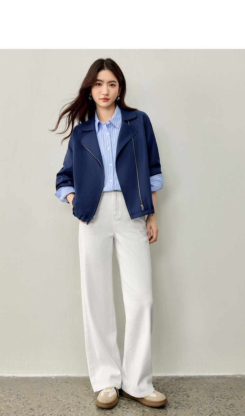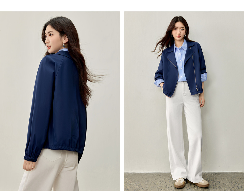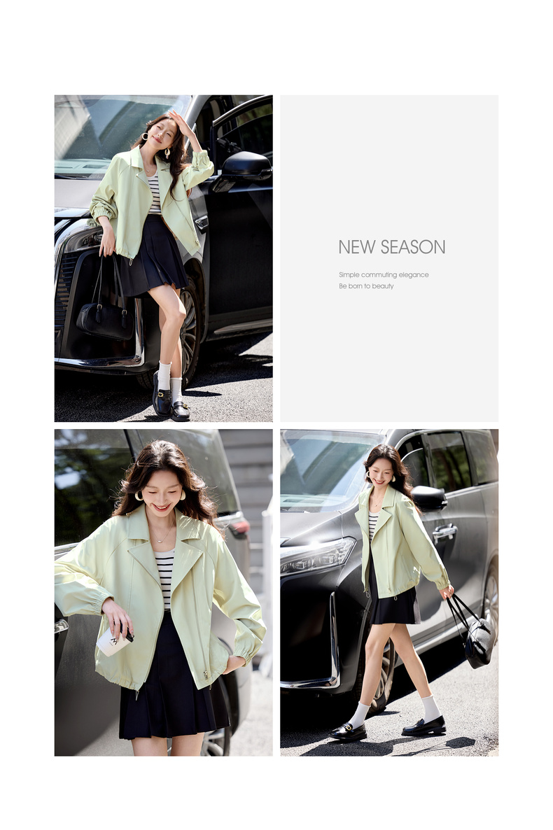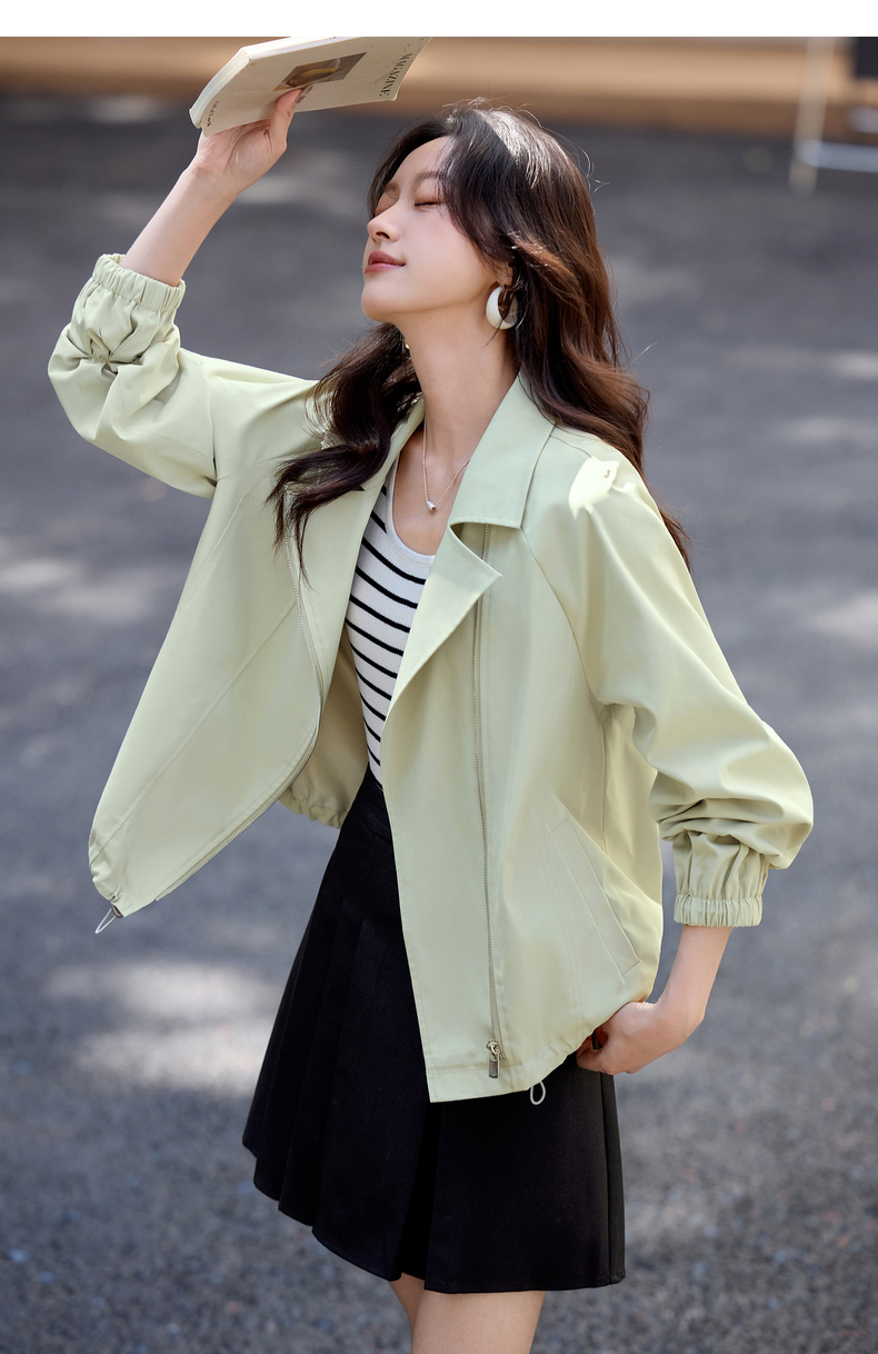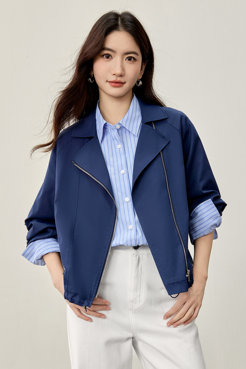 【内购】【防污防油防水】简约通勤翻驳领斜门襟可调节抽绳宽松插肩袖外套-153WB2106