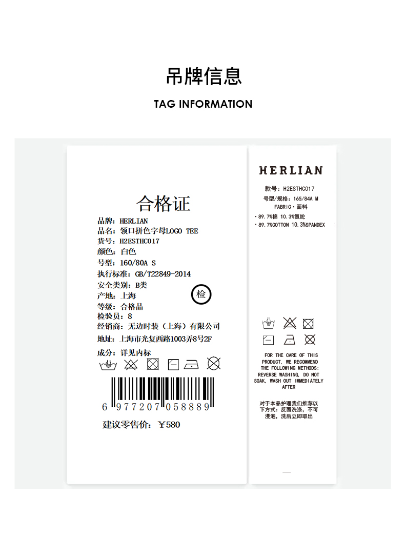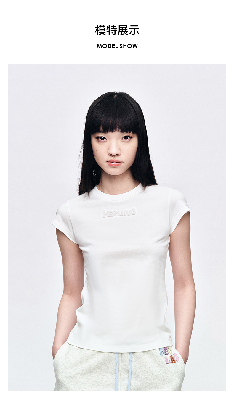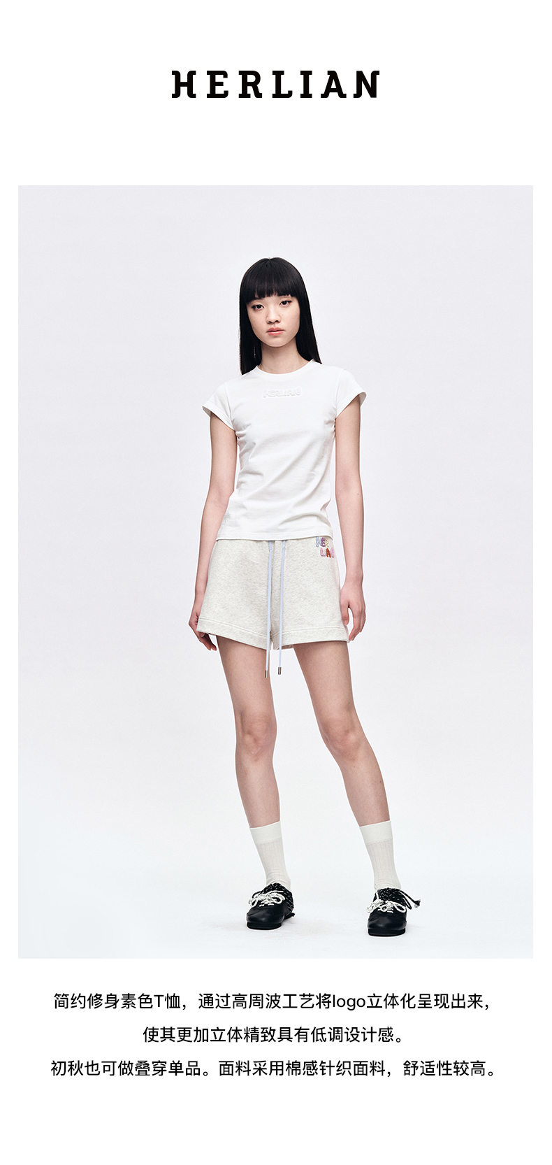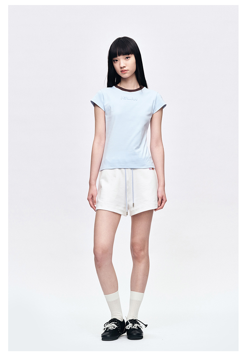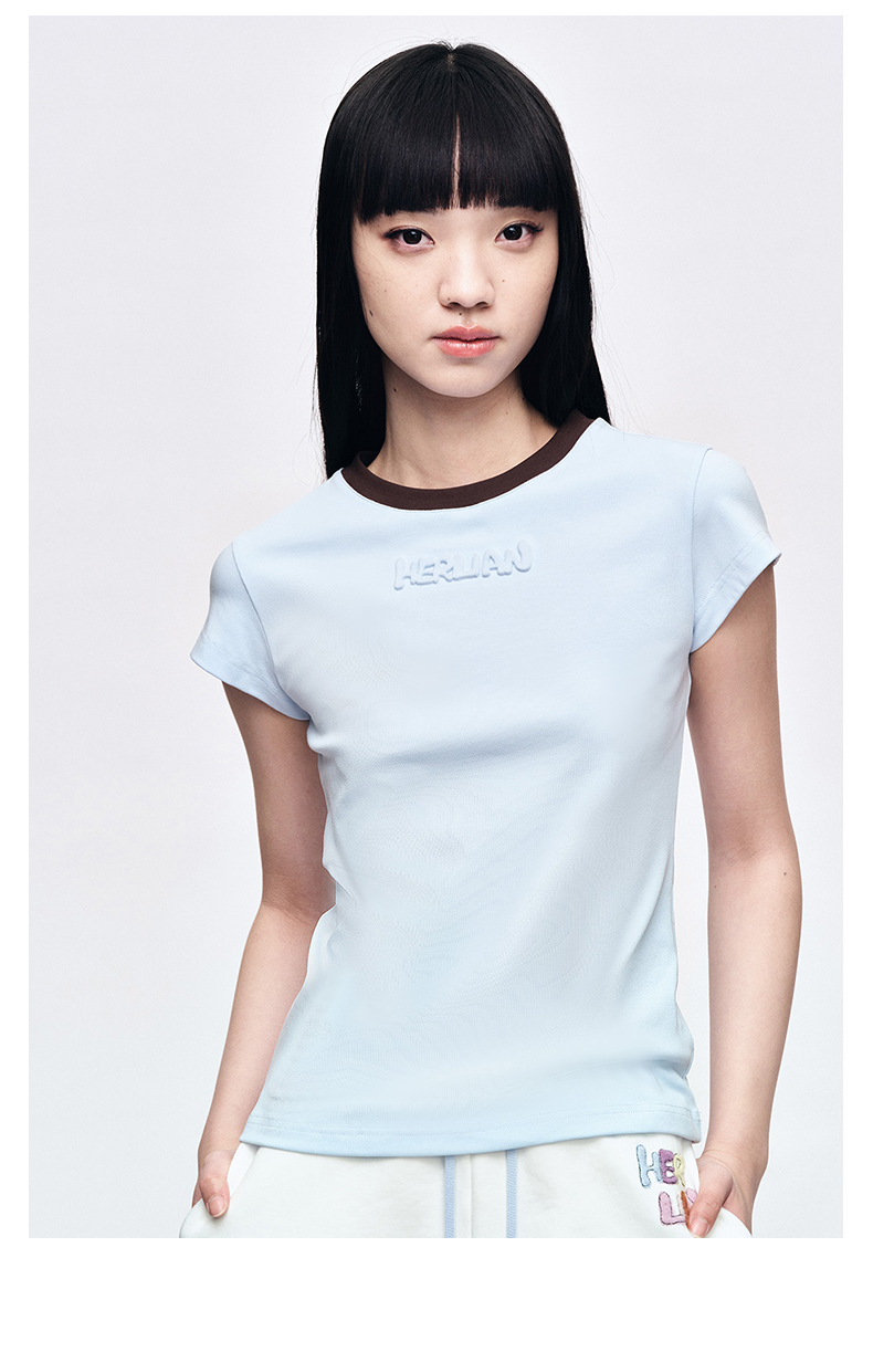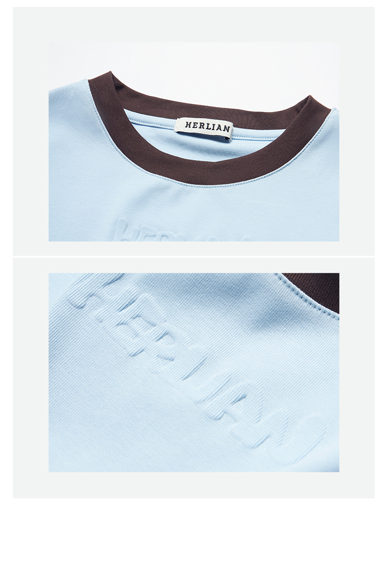 Herlian2025年夏季新品女士领口拼色字母LOGO TEE