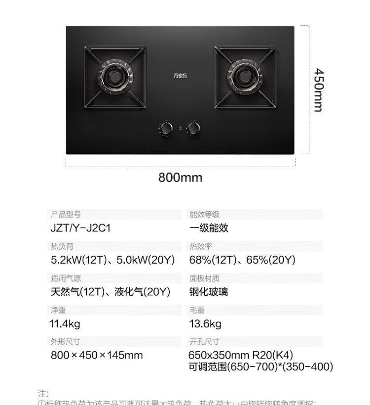 万家乐J2升级款新品J2C1家用厨房灶具5.2KW大火力68%热效率一级能效 新品5.2KW灶具JZT-J2C1天然气 门店线下款【粤湾】【双十一】