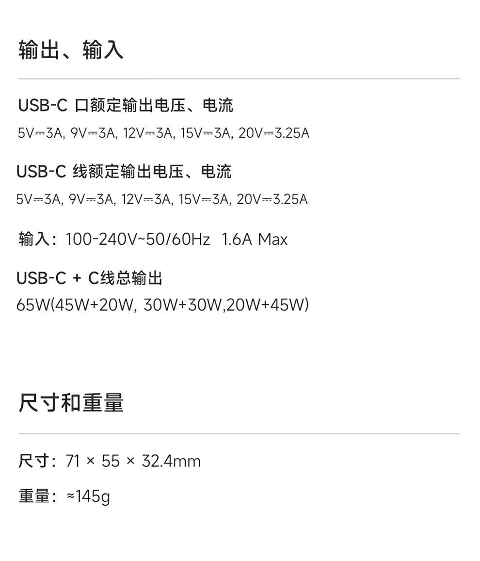 SHARGE/闪极 65W唱片充电头 适用于苹果17小米华为手机平板可带上飞机高铁