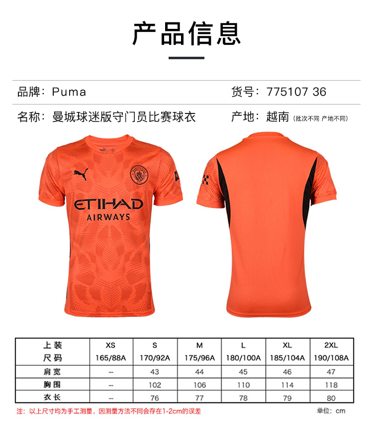小李子PUMA彪马 24-25赛季曼城2客球迷版守门员比赛球衣成人男77510736