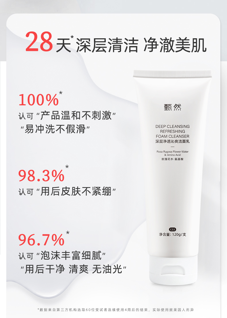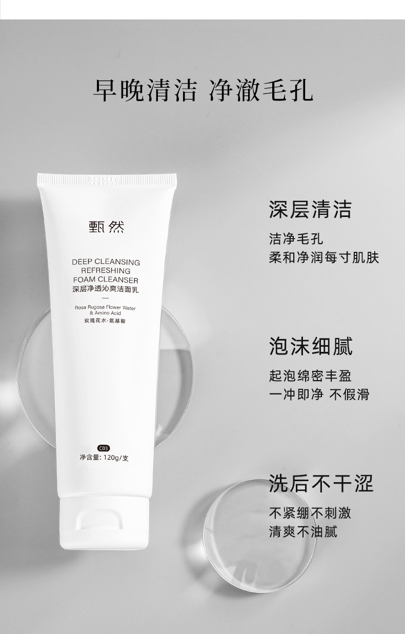【玫瑰花水·氨基酸洗面奶】甄然深层净透沁爽洁面乳120g/支(买一送一)