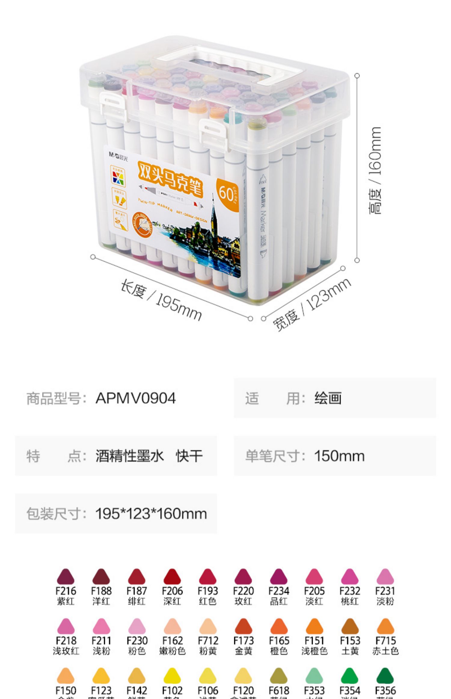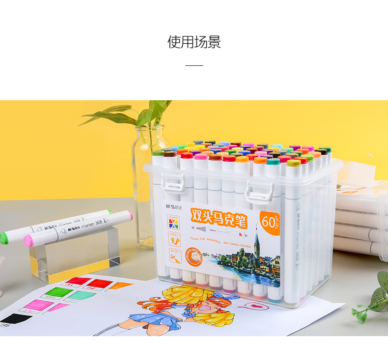 晨光双头马克笔60色APMV0904水彩绘画速干美术学生用涂鸦漫画