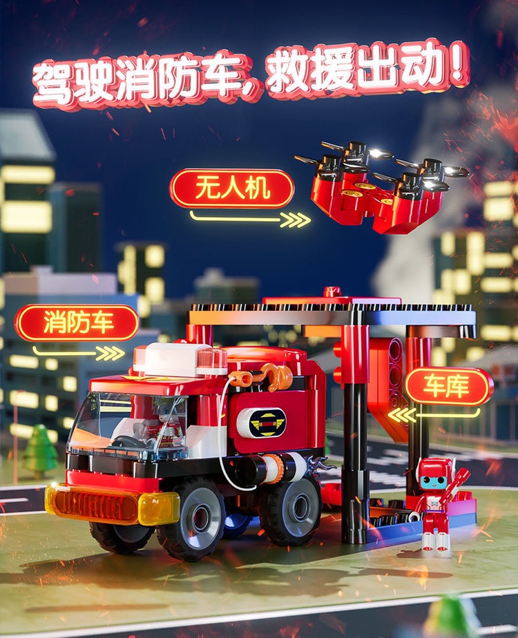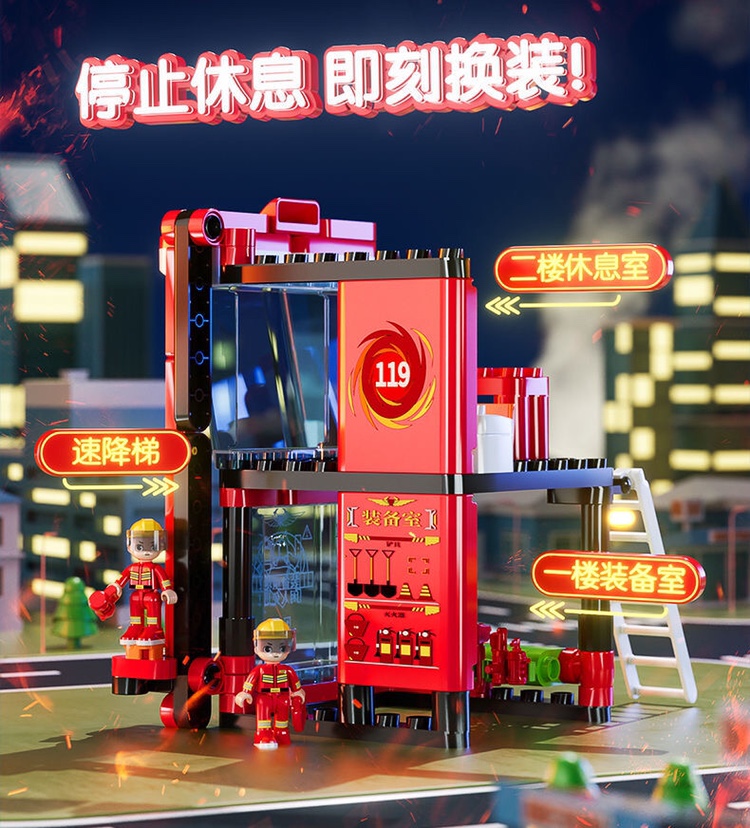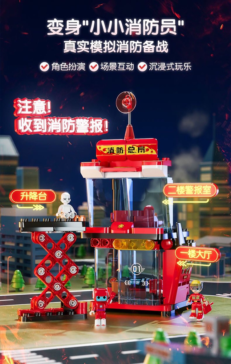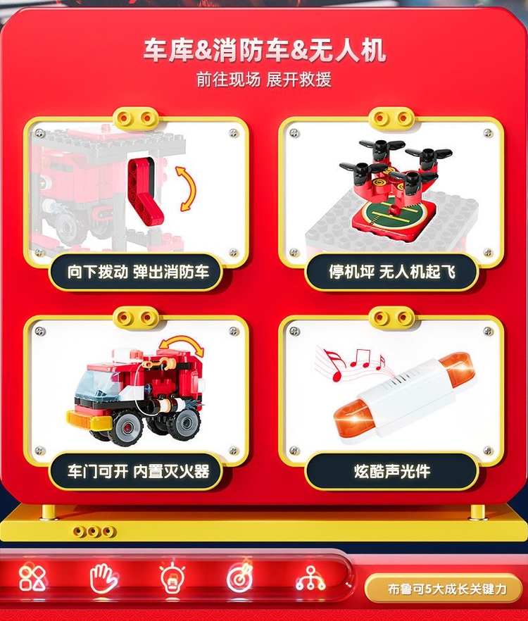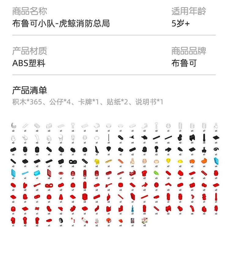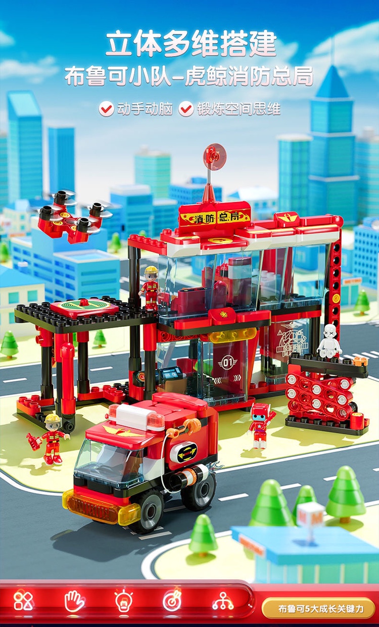 布鲁可小队虎鲸消防总局儿童益智拼装玩具布鲁克拼插积木男孩女孩