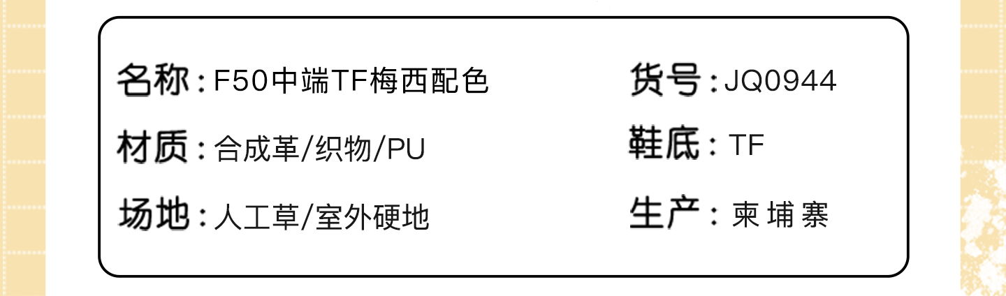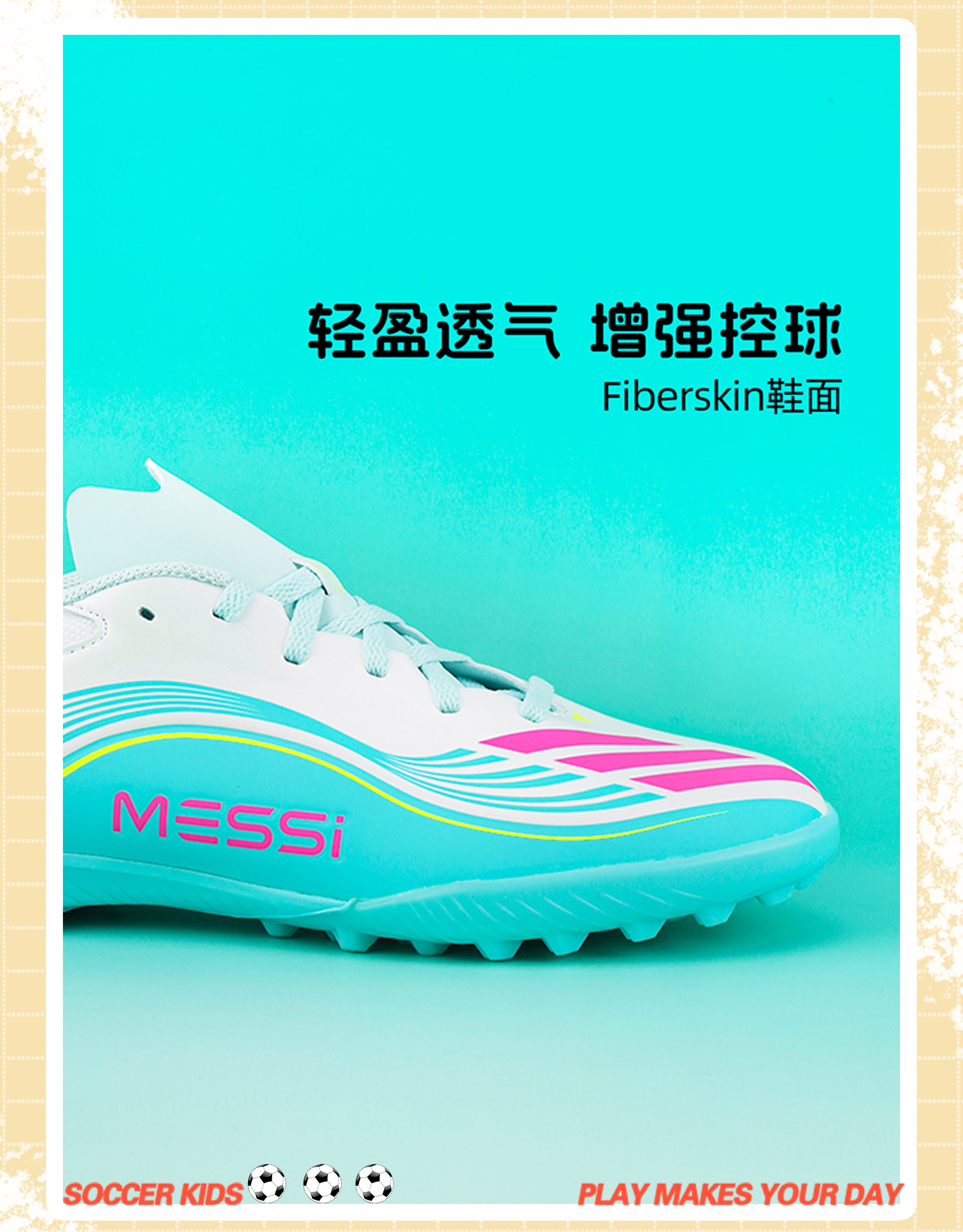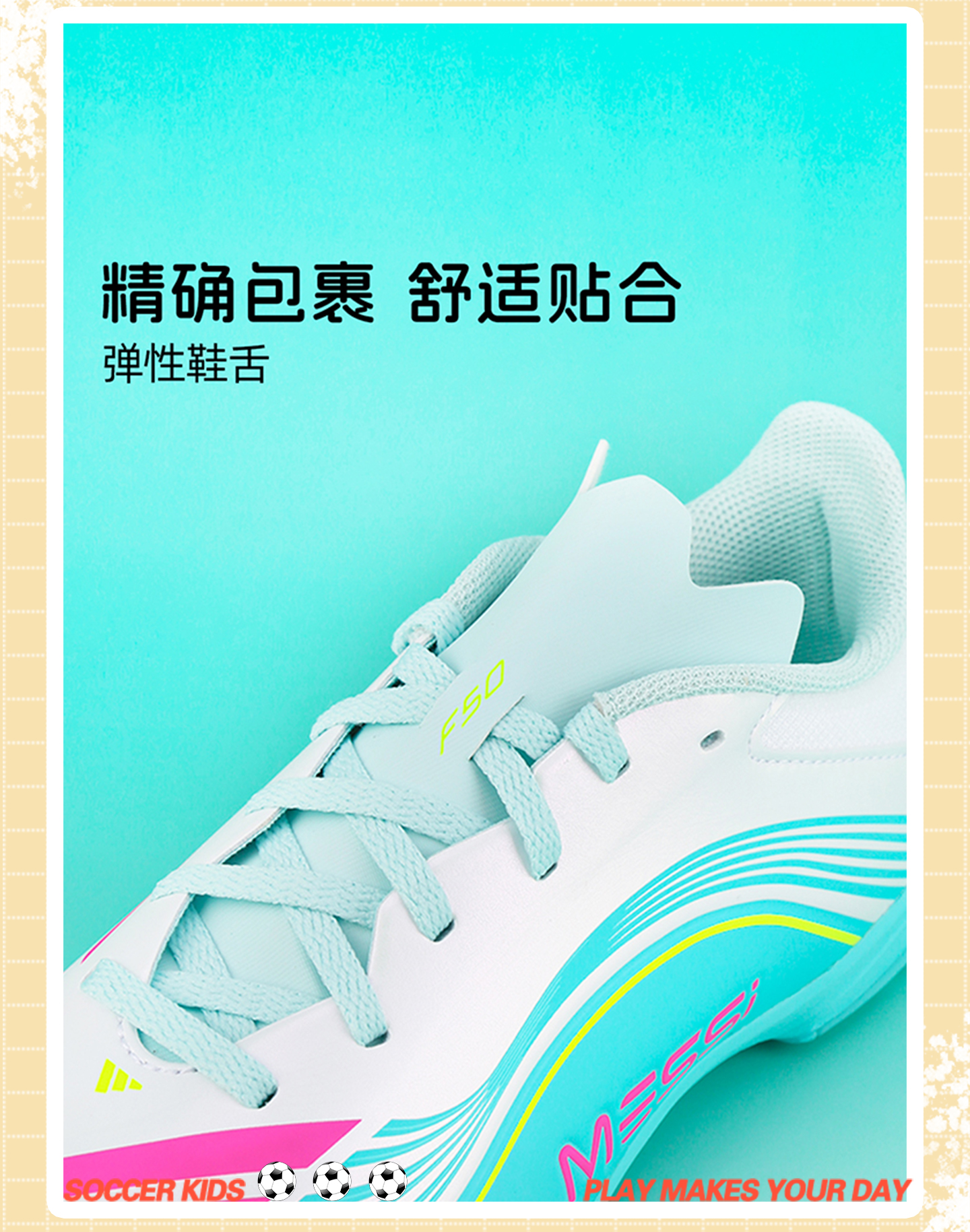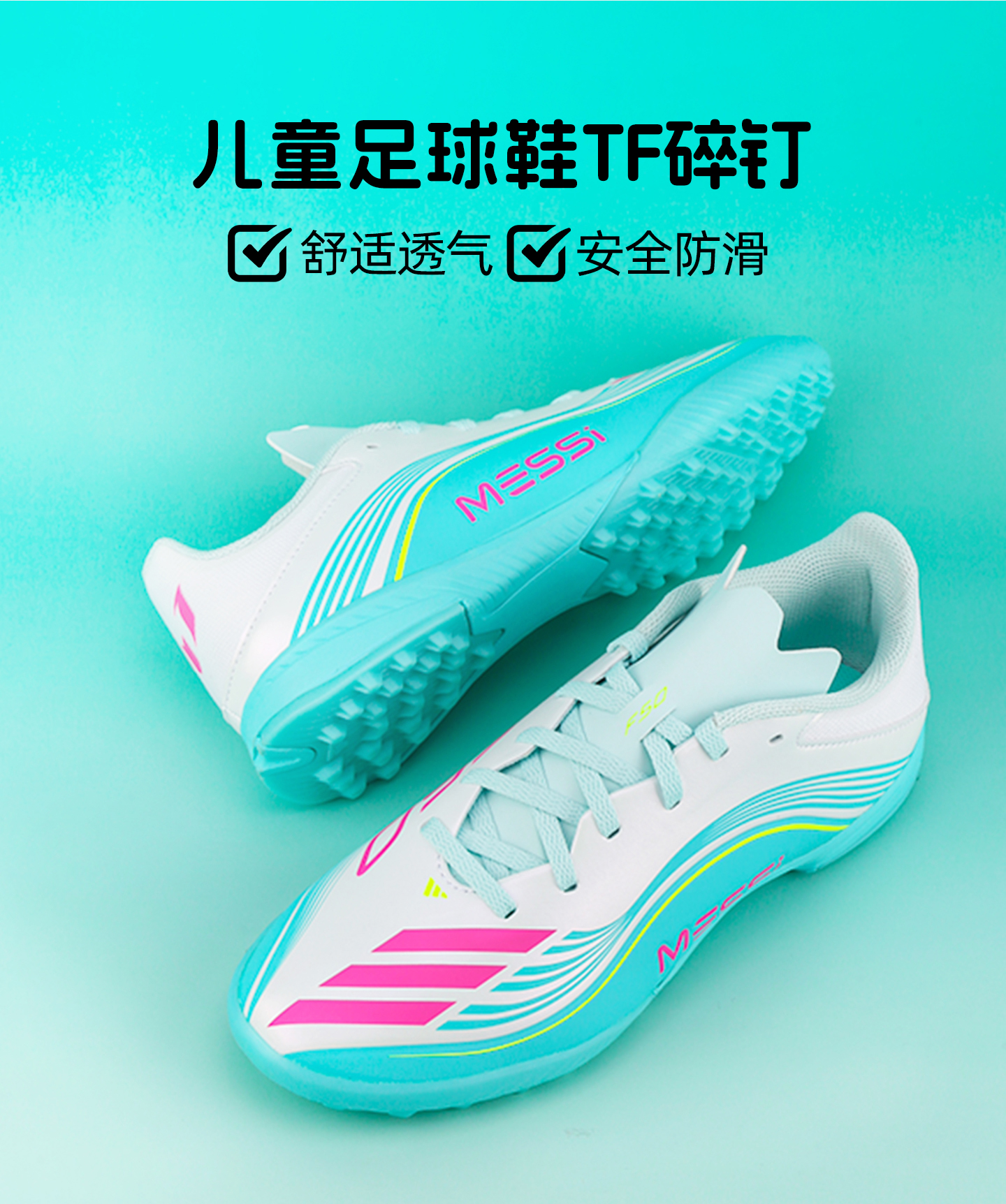 【梅西专属配色】阿迪达斯儿童足球鞋F50中端TF碎钉青少年足球鞋男孩JQ0944