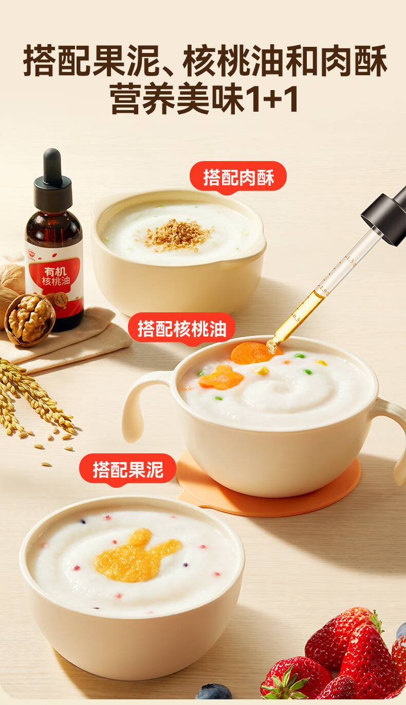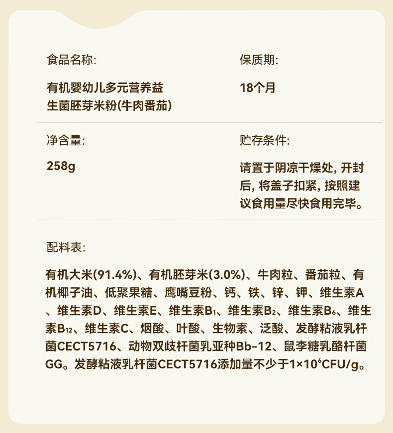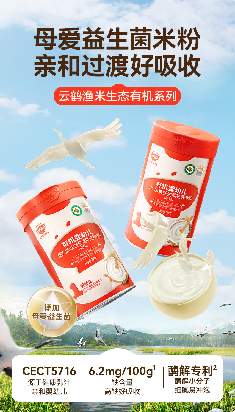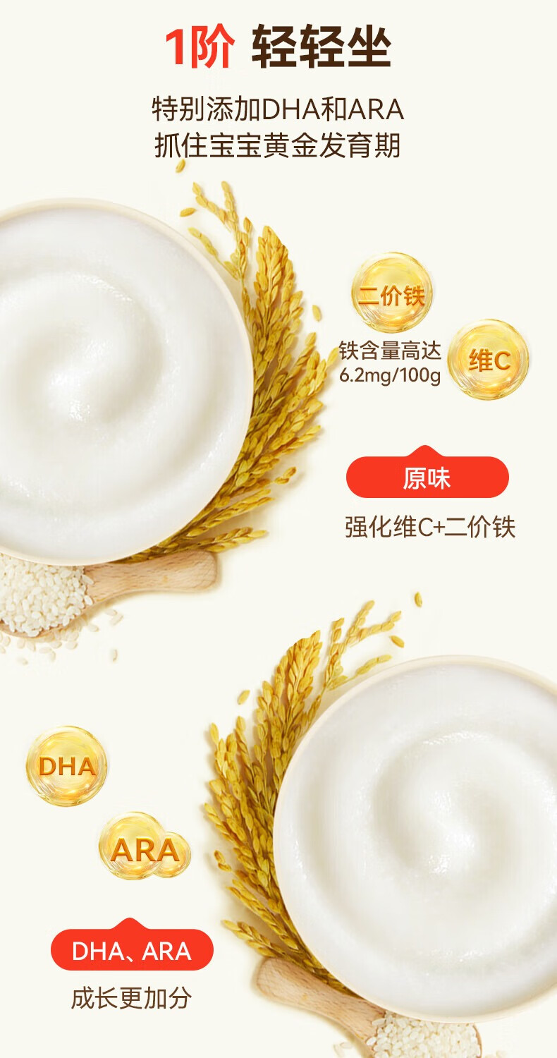 秋田满满有机婴幼儿维C加铁益生菌胚芽米粉(DHA+ARA)258g