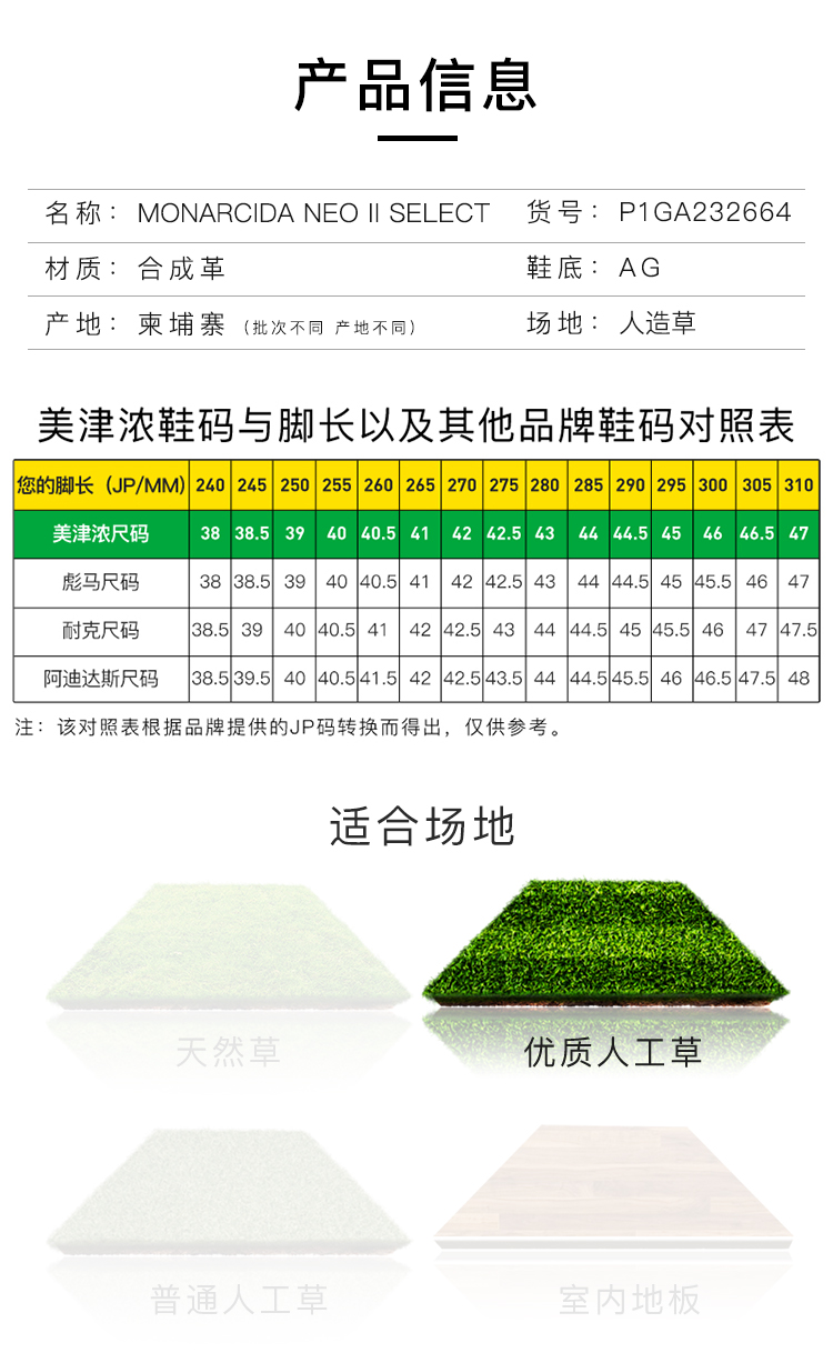 Mizuno/美津浓MONARCIDA NEO 2中端AG短钉成人足球鞋男P1GA232664