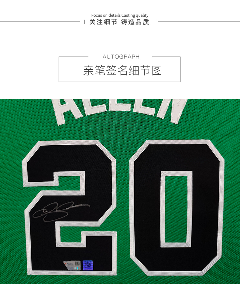 收藏系列 雷阿伦 绿军20号绿色 球员版 亲笔签名球衣