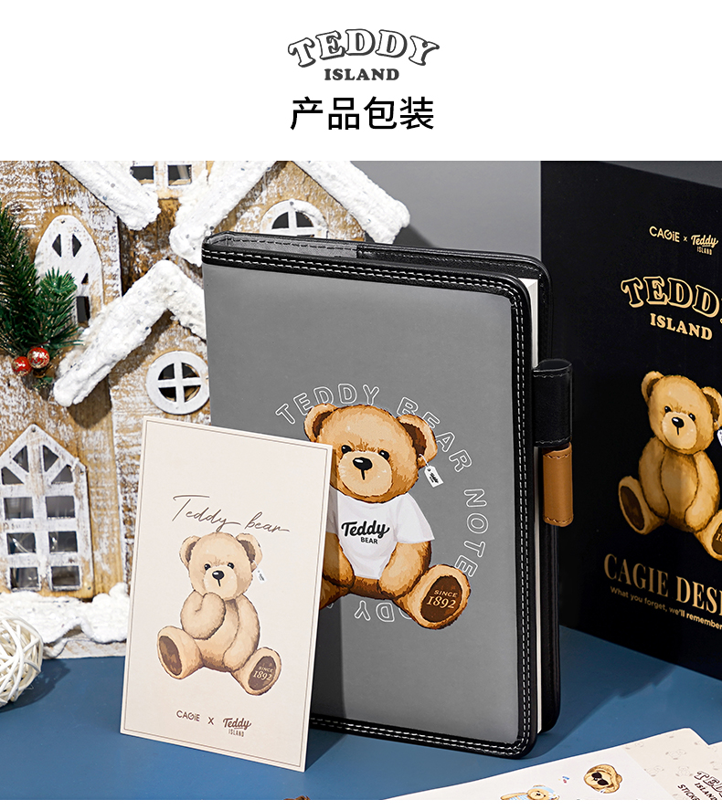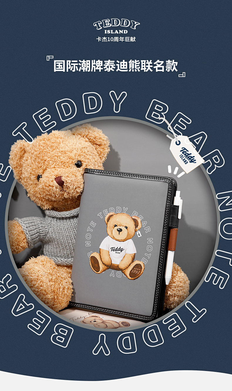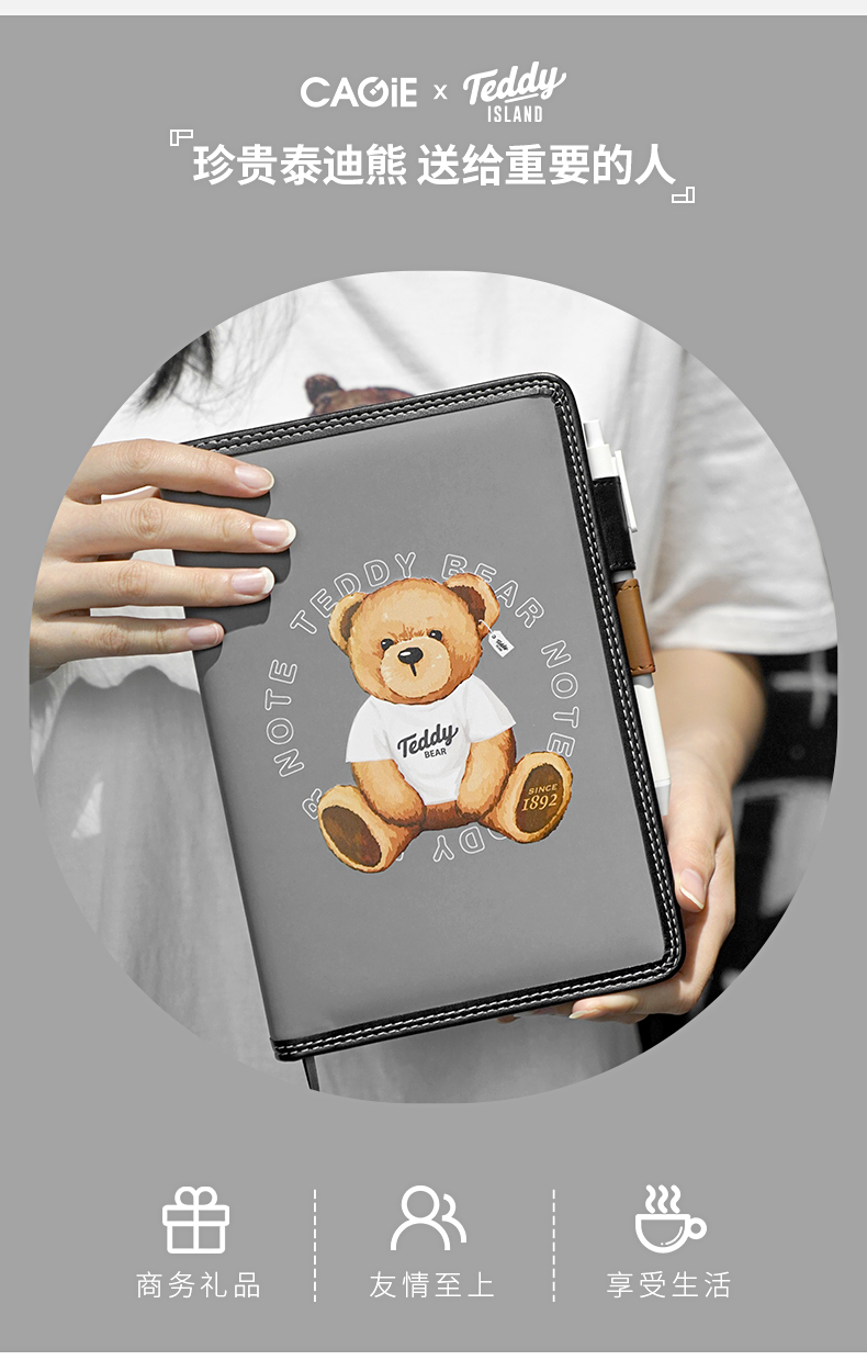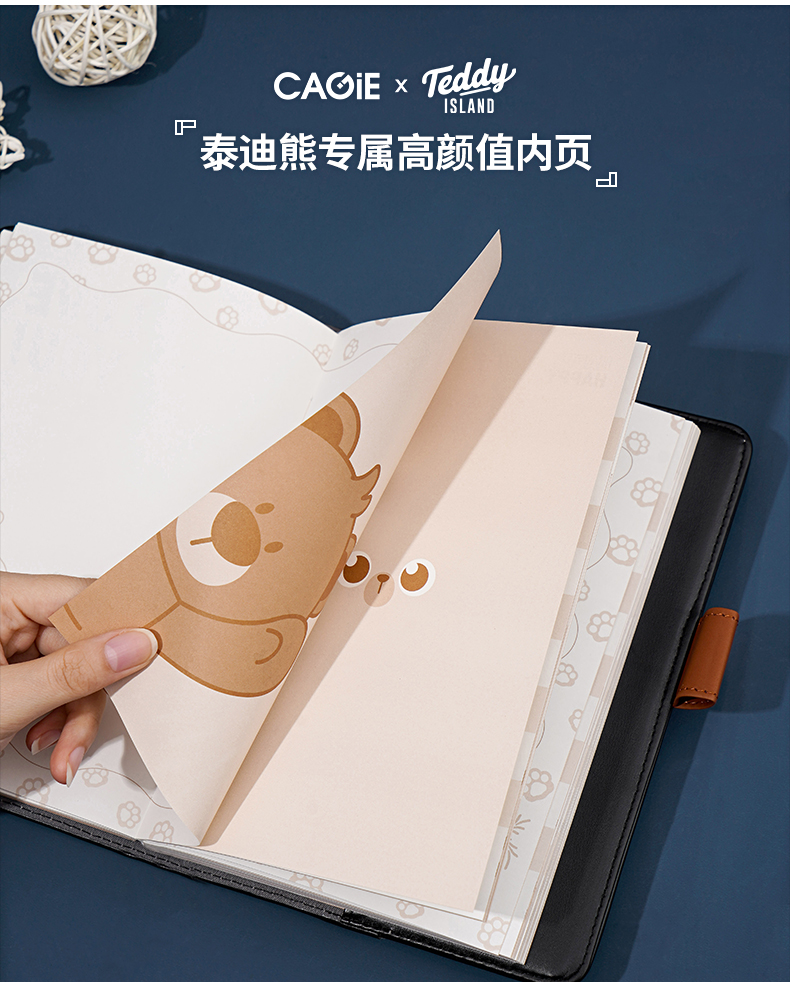 卡杰泰迪熊系列滚边手账本A5/CA5J-TD07少女心可爱风简约ins风大学生女生高级日记本