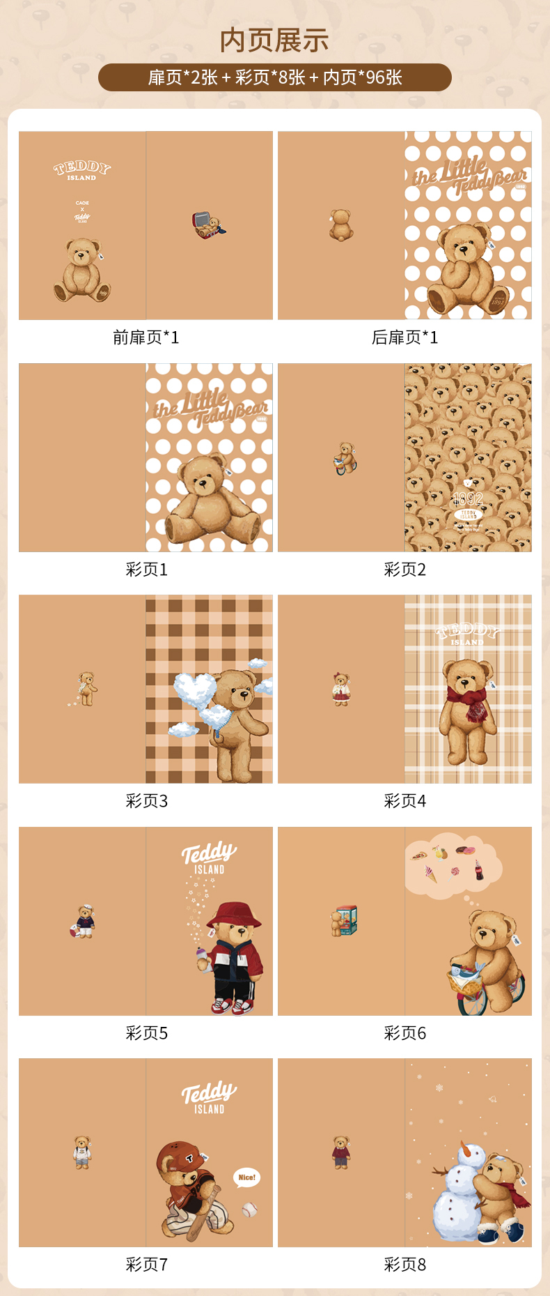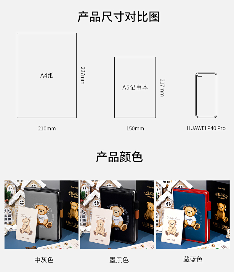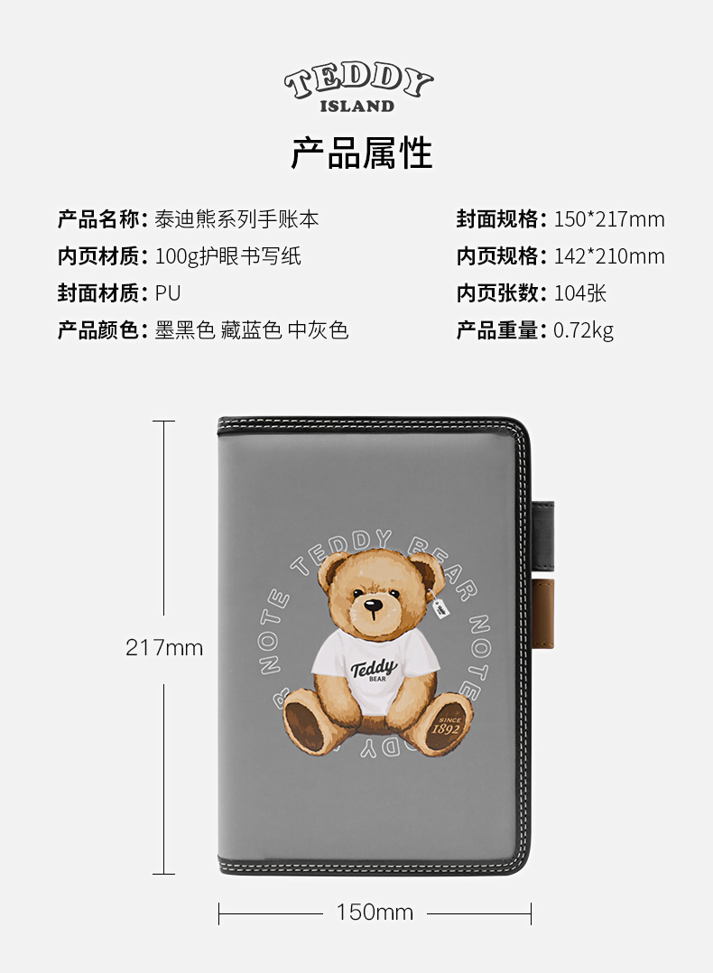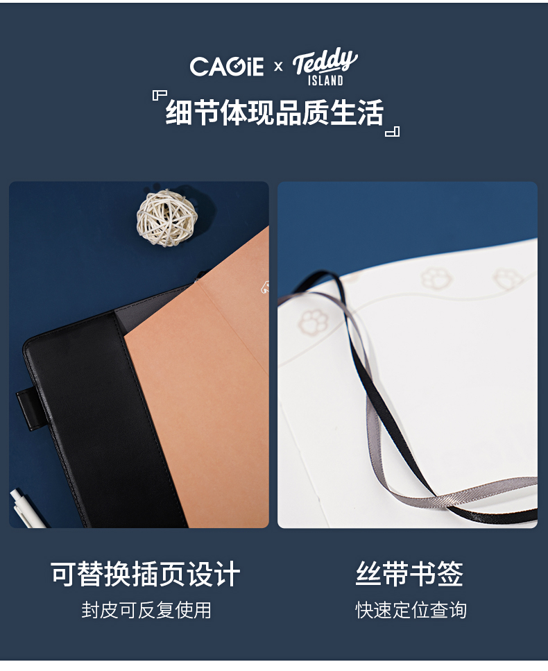 卡杰泰迪熊系列滚边手账本A5/CA5J-TD07少女心可爱风简约ins风大学生女生高级日记本