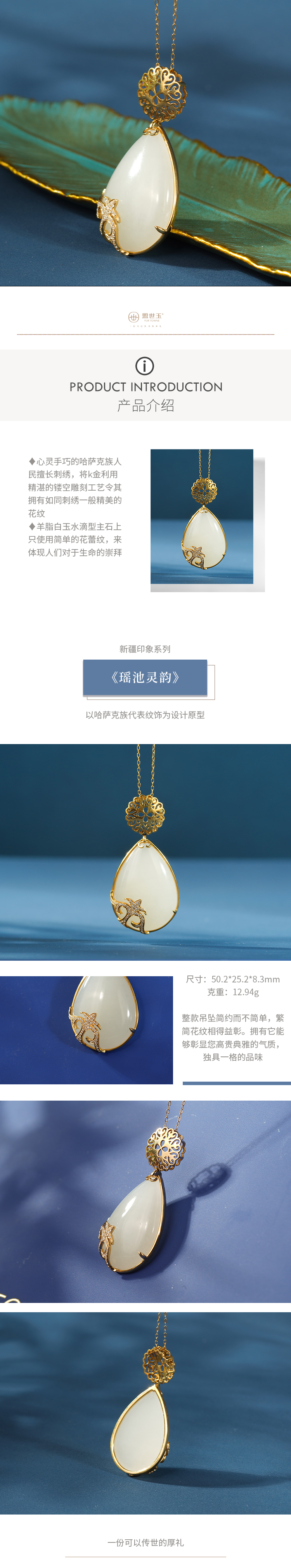 新疆国玉盟世玉和田玉金镶羊脂玉挂件 新疆系列【瑶池灵韵】【带证书·顺丰物流】