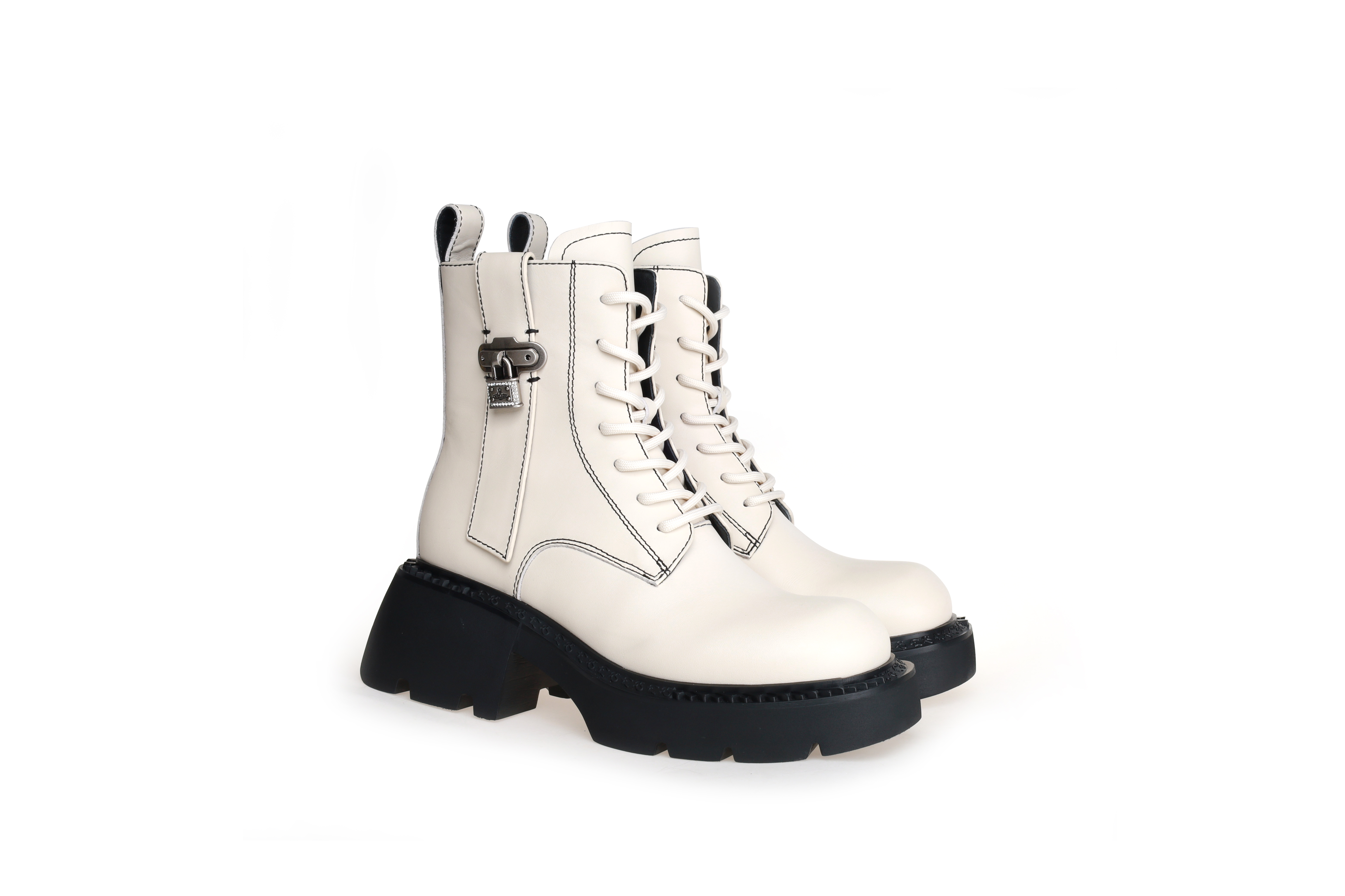 豪麟名鞋奥莱迪嘉女鞋马丁靴牛皮革DJHJA42WN013白色 原价2960元
