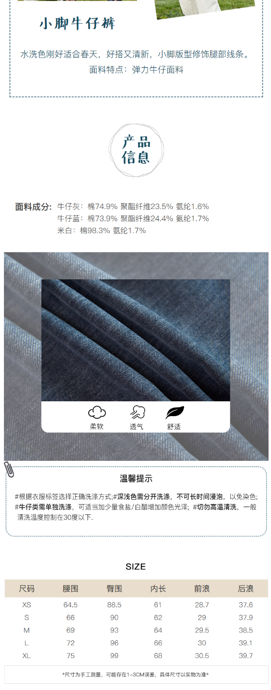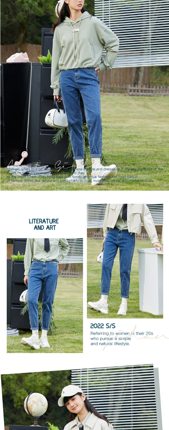 ZIHAN紫涵直筒高腰水洗牛仔裤女2022春新款小脚裤百搭显瘦长裤 Z2Z01BS286