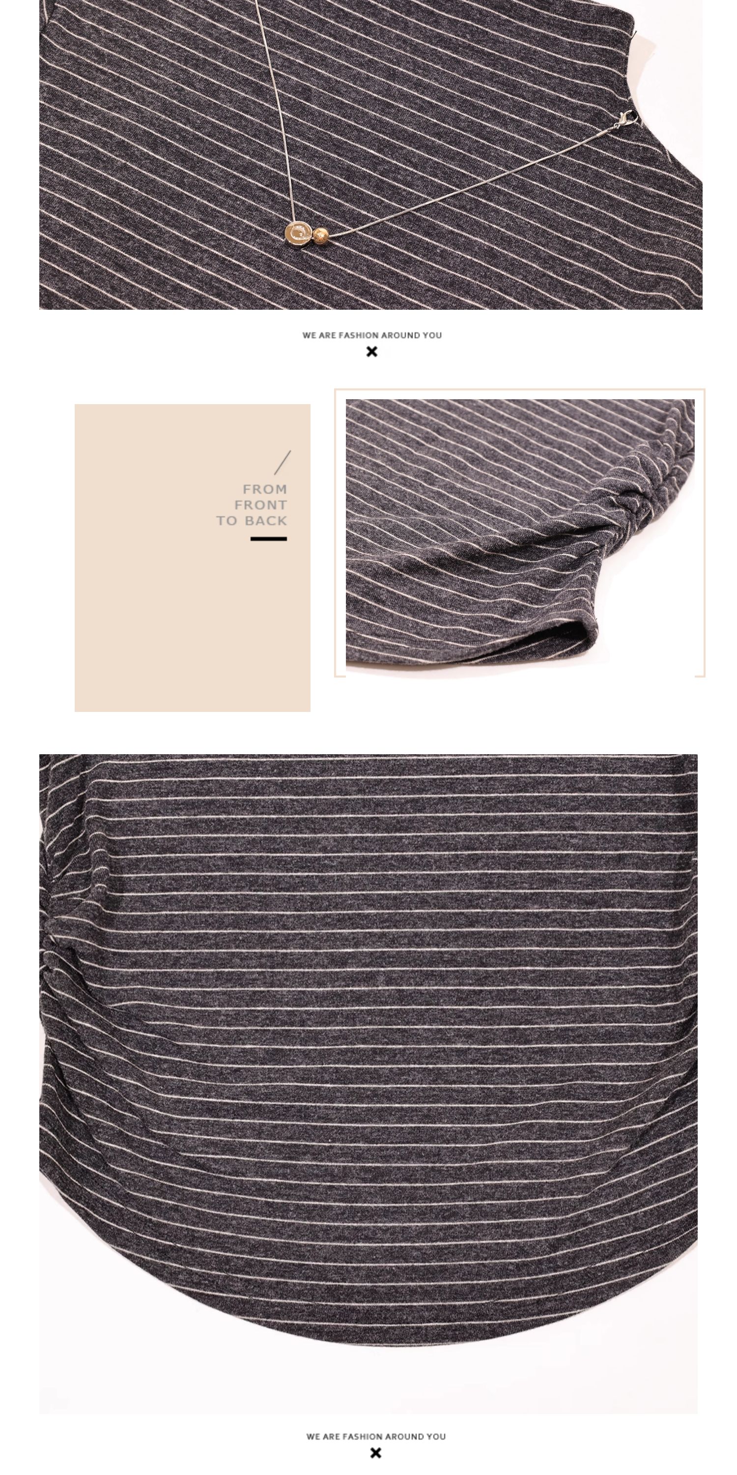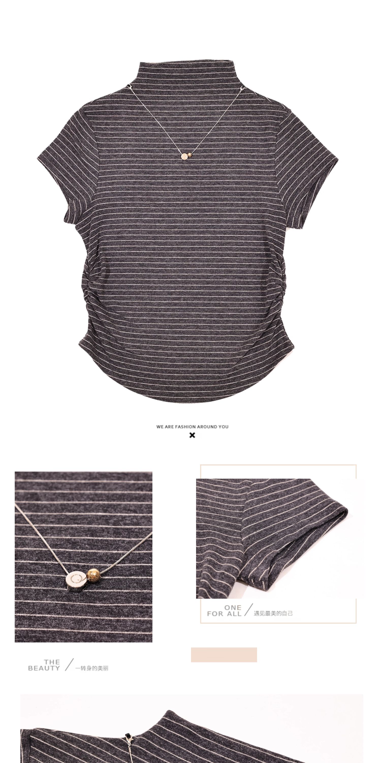 半身缘女装 秋季半高领经典条纹修身T恤253113M01140011