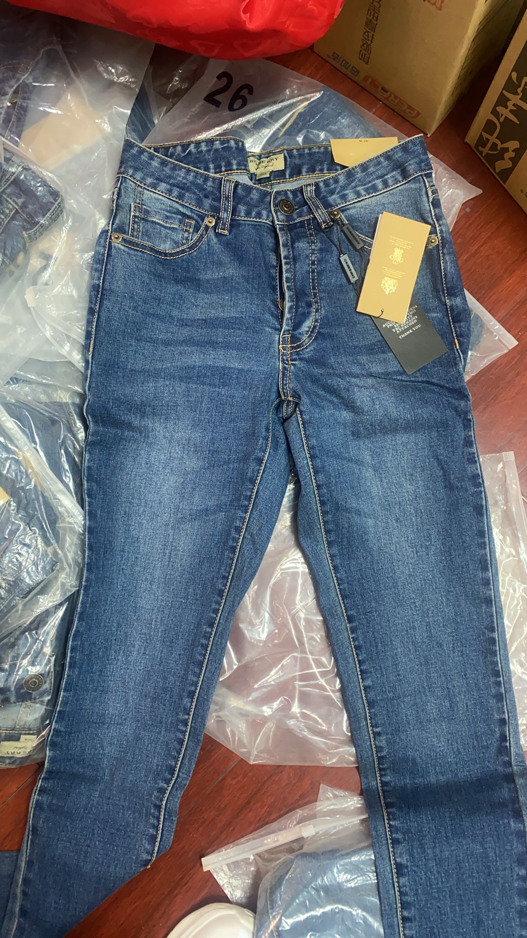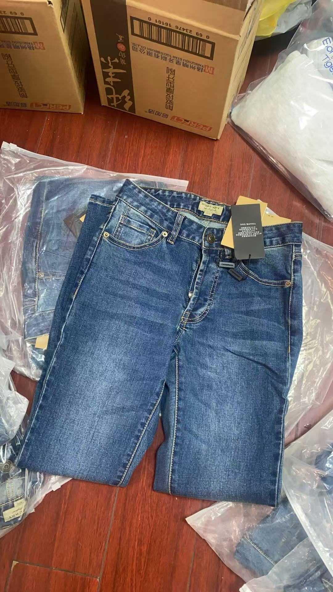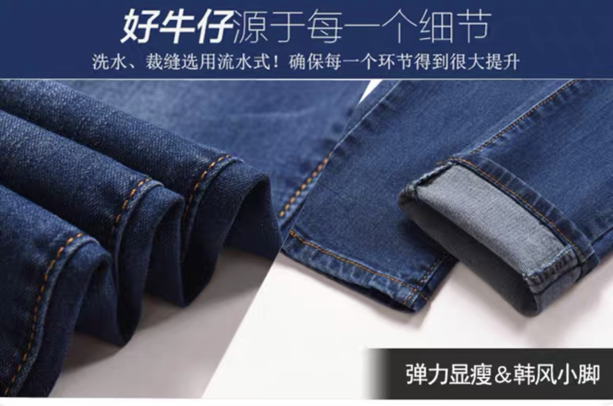 【详情】这款是春秋款的裤子,原单品质,数量不多,每一条都是精品,买的赚到!大牌做工更是完美,腰部做了暗扣设计,贴心又巧妙,五金做工很棒 ,裤子面料是客定的,手感细腻舒适,上身透气,弹性佳。经典复古蓝,实物颜色以下实拍为准