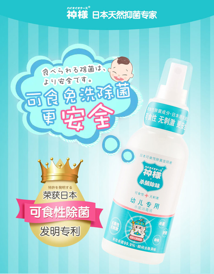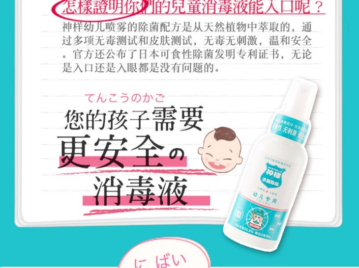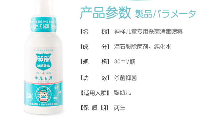 秒杀 | 日本神样婴儿免洗除菌消毒液1瓶 儿童杀菌喷雾宝宝专用80ml(不支持无理由退换) [福利品]