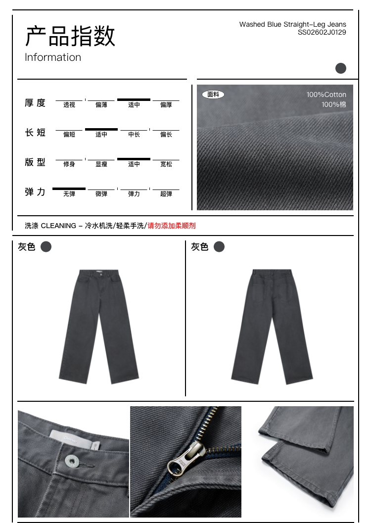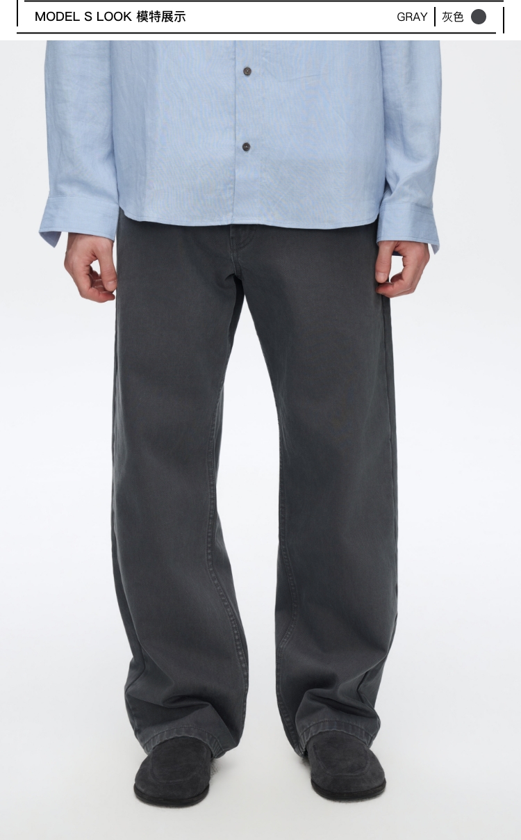 直筒套色灰牛仔裤