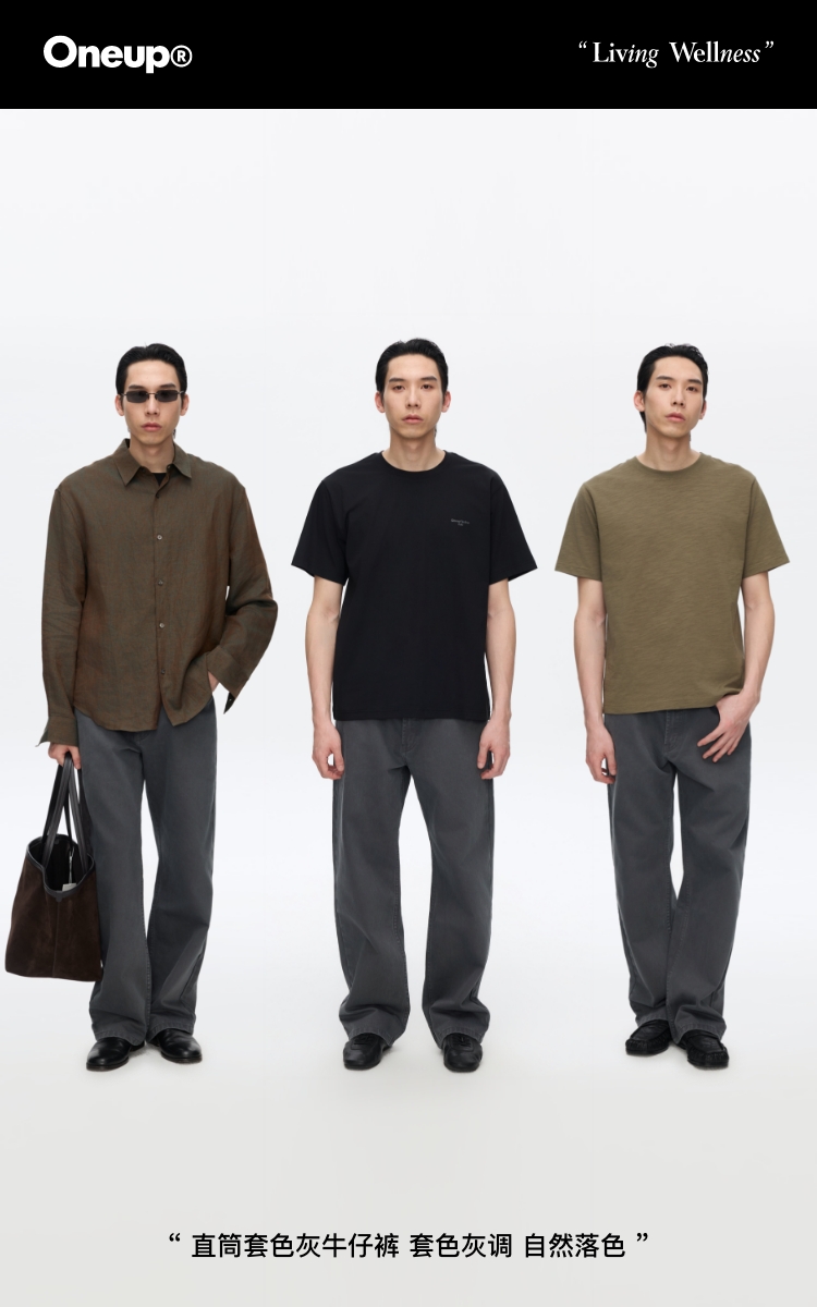 Oneup直筒套色灰牛仔裤