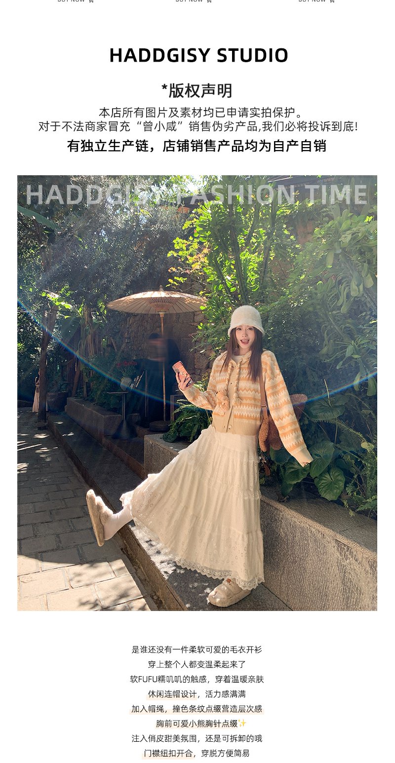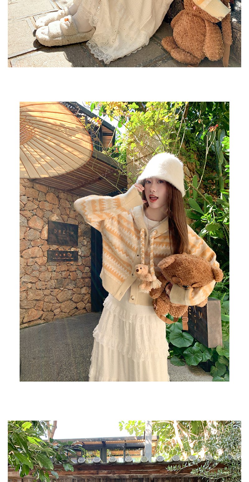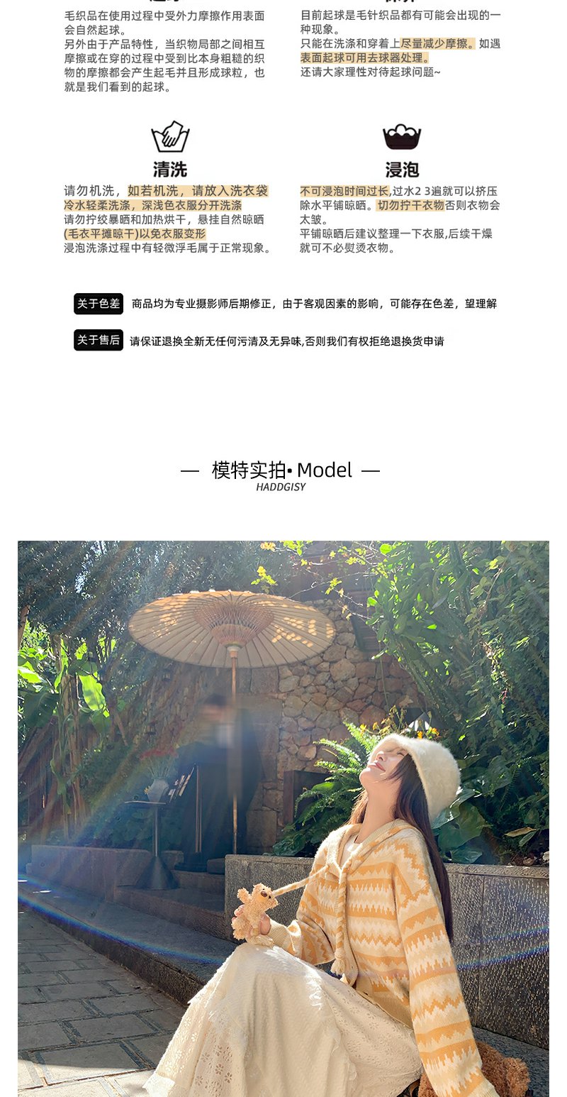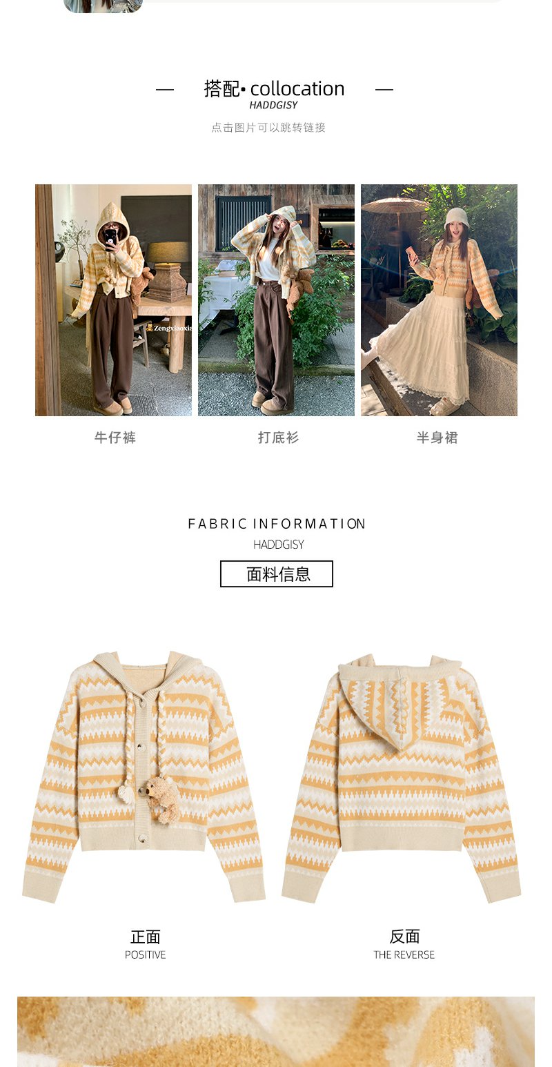 <曾小咸推荐>冬季复古黄条纹连帽小熊毛衣