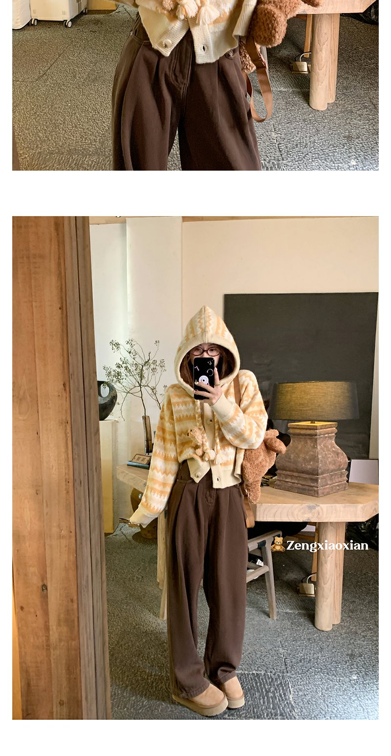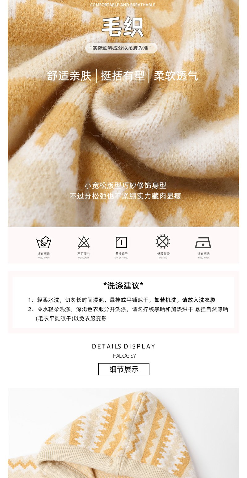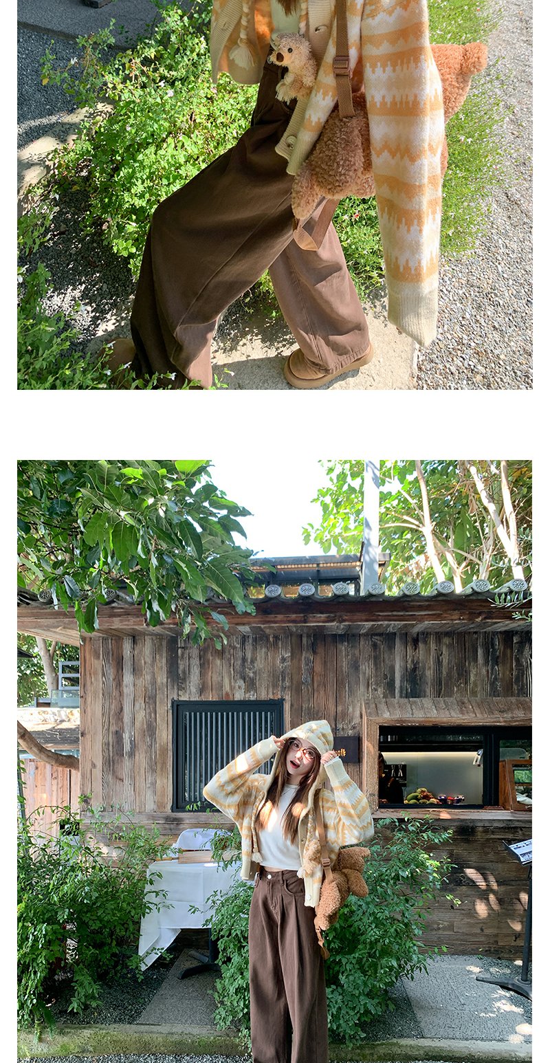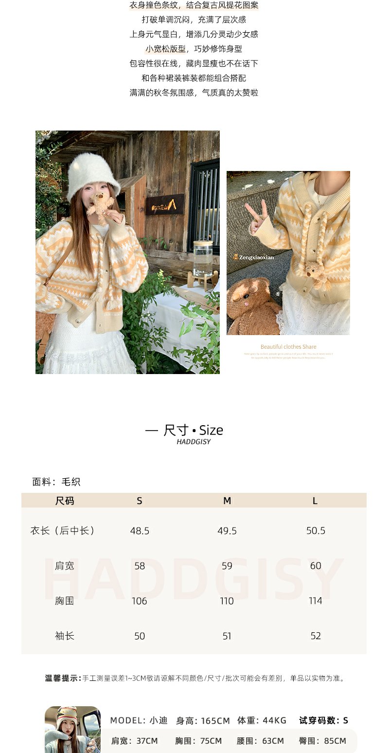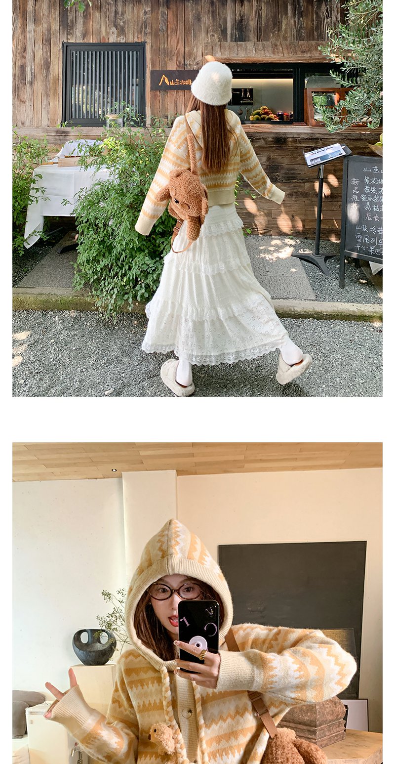 <曾小咸推荐>冬季复古黄条纹连帽小熊毛衣