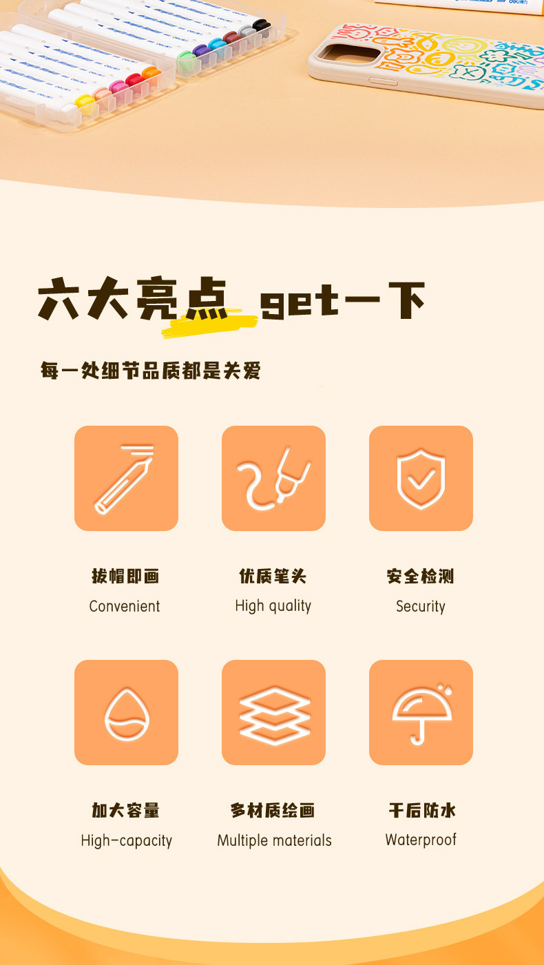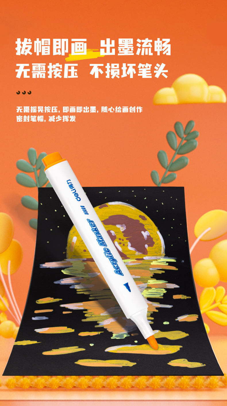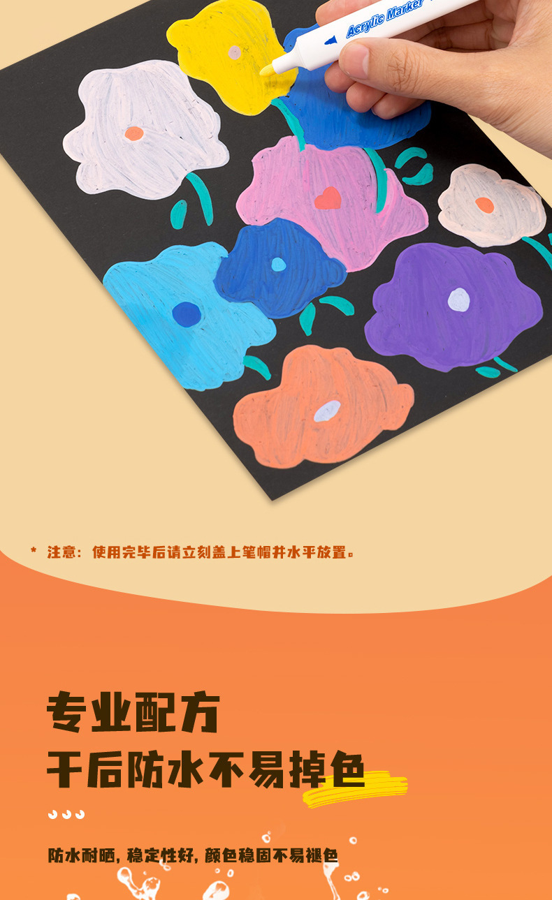【Deli/得力文具!12/24/36/48色】得力丙烯马克笔,奶油般涂抹,色彩娇艳如梦。画出你的梦幻世界,儿童、学生皆可轻松驾驭。多材质随心涂鸦,水洗不褪色,用心创作每一笔。