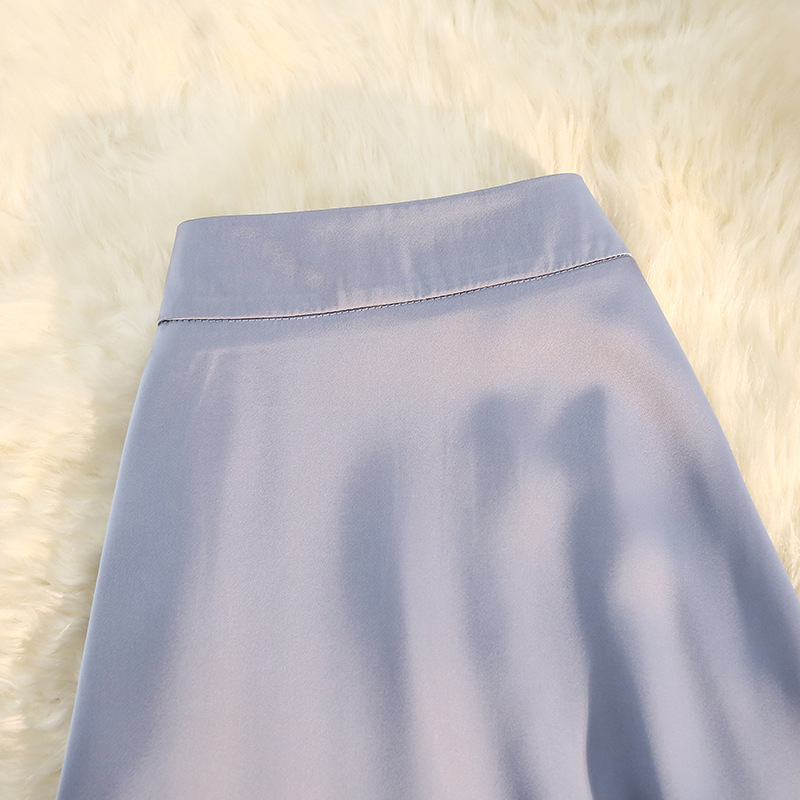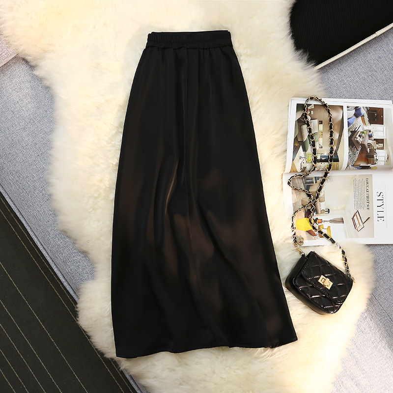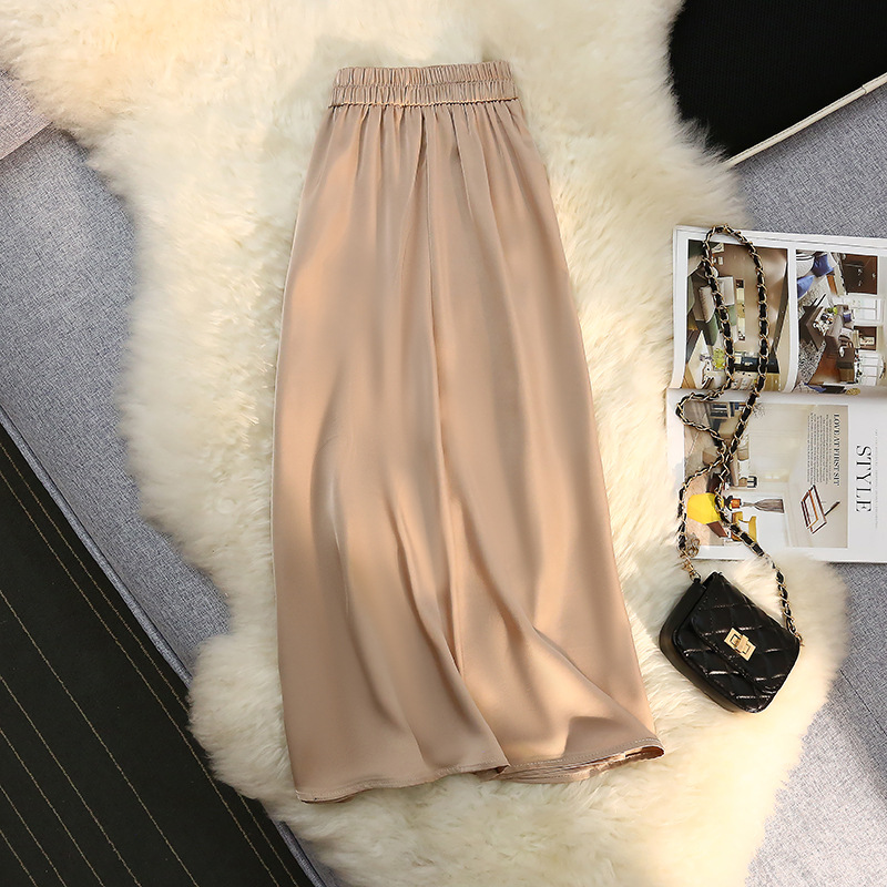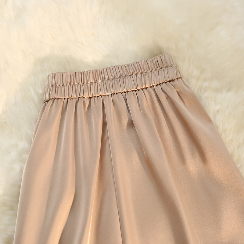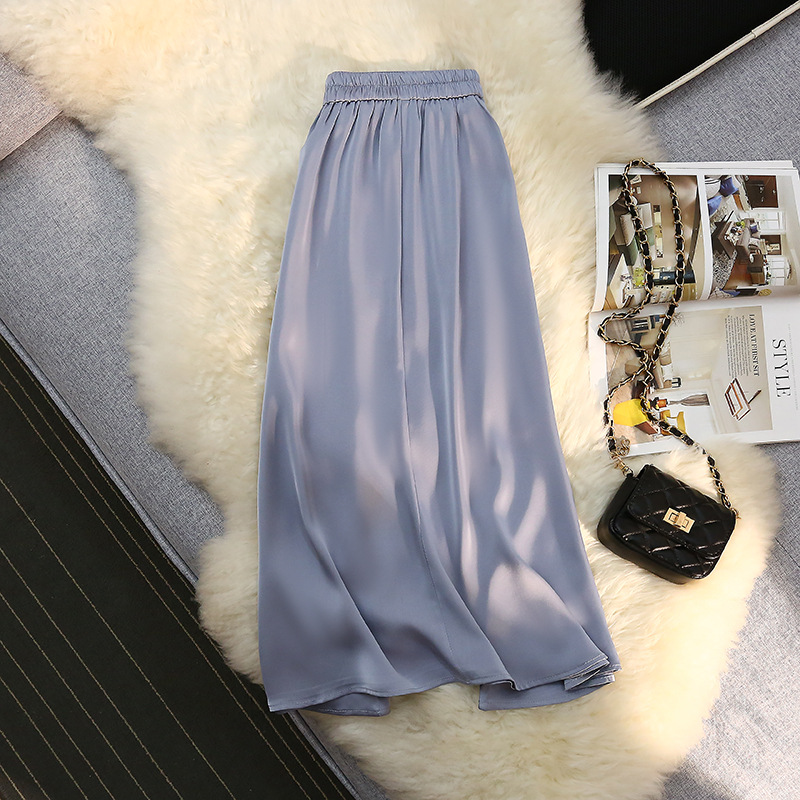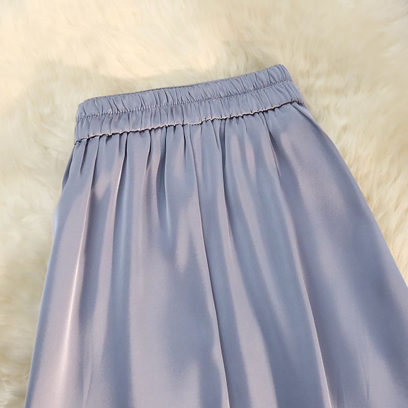 「八色可选!醋酸半身裙女」2023春夏季新款绸缎松紧腰中长款大摆高腰裙子