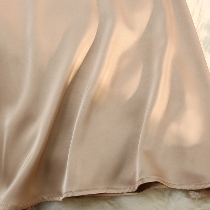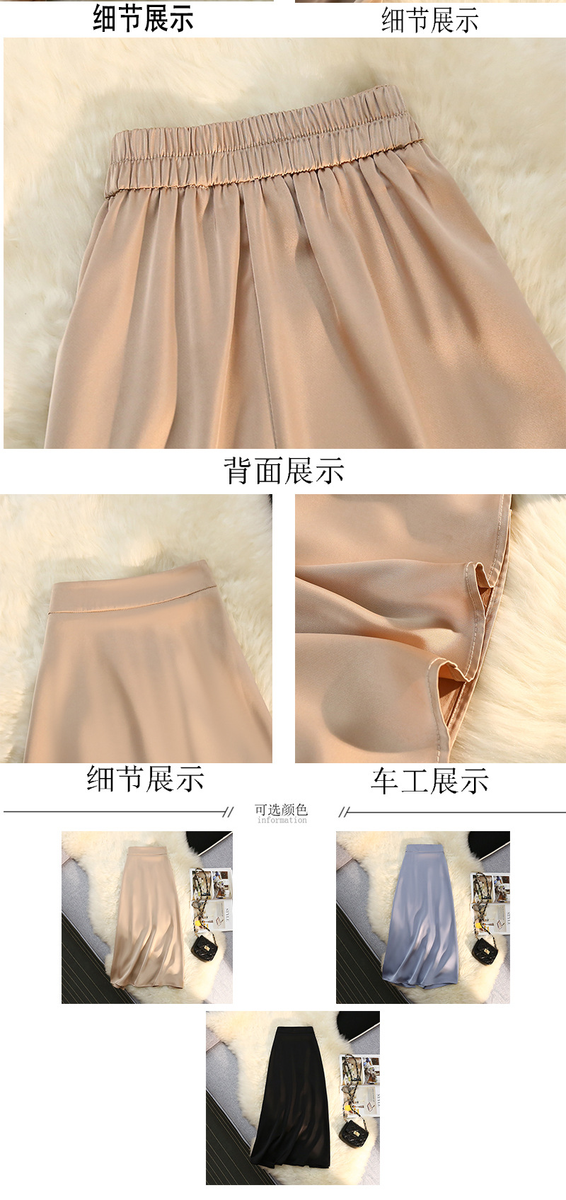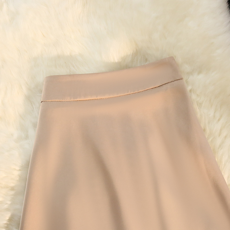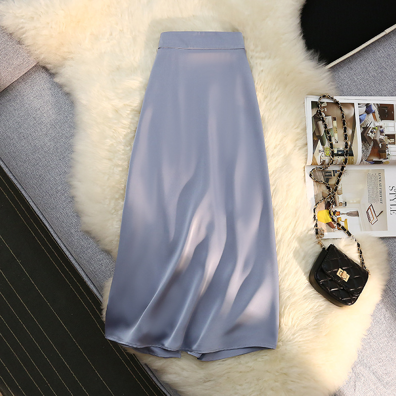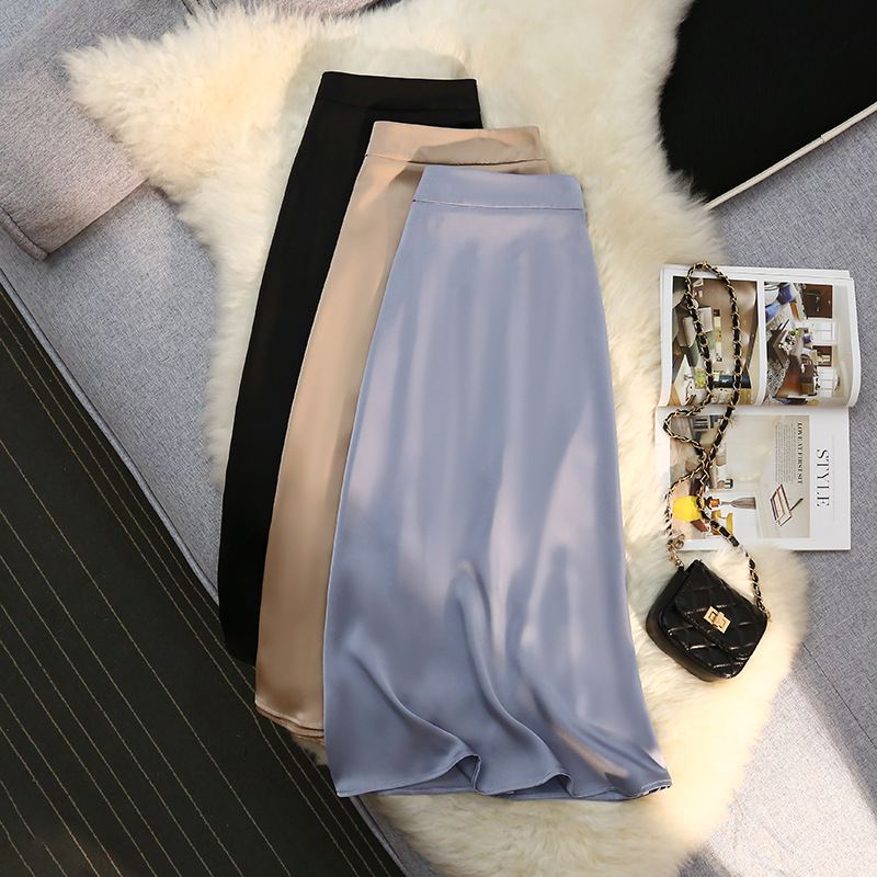 「八色可选!醋酸半身裙女」2023春夏季新款绸缎松紧腰中长款大摆高腰裙子