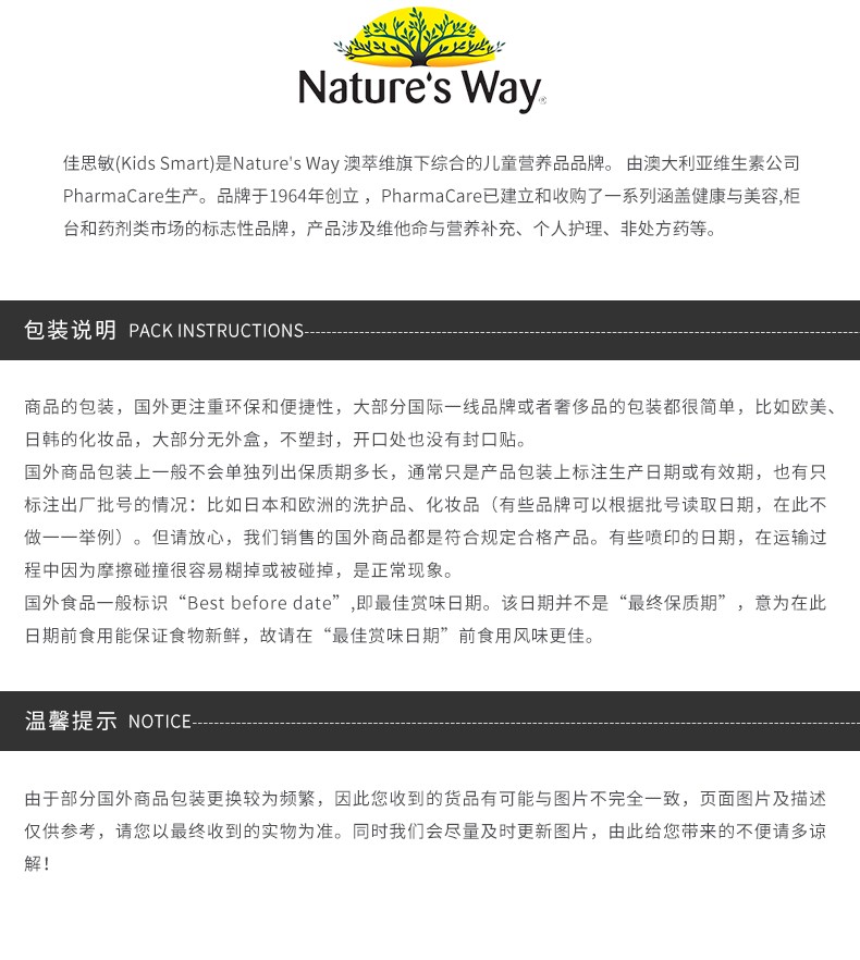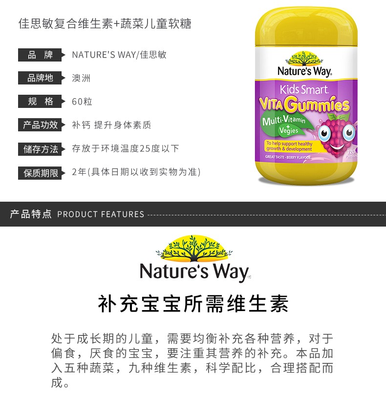 NATURE'S WAY 佳思敏 儿童维生素蔬菜营养软糖 60粒 澳大利亚