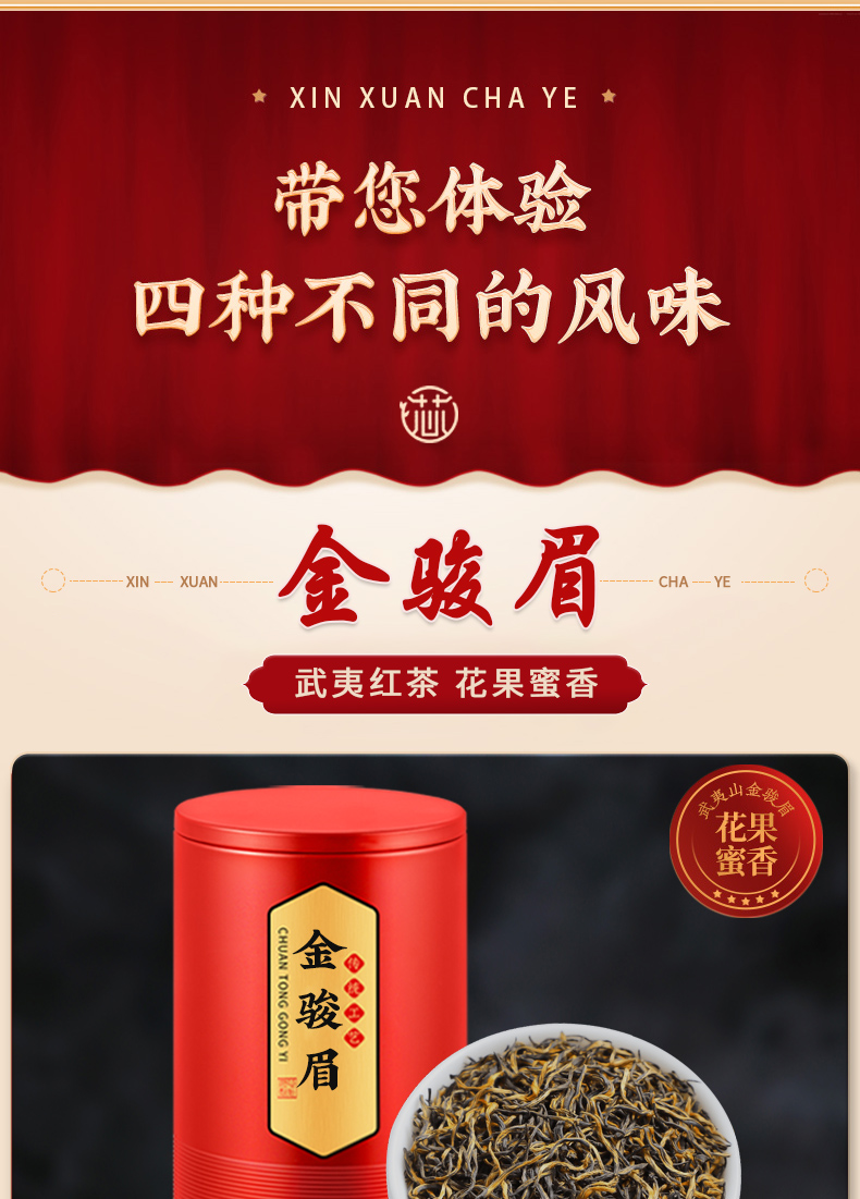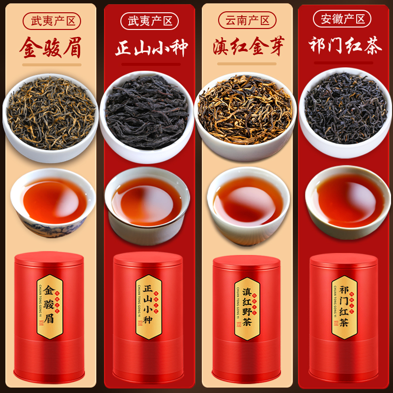 【芯轩】金骏眉125g+正山小种125g+祁门红茶125g+滇红野茶125g 到手4罐 共465克