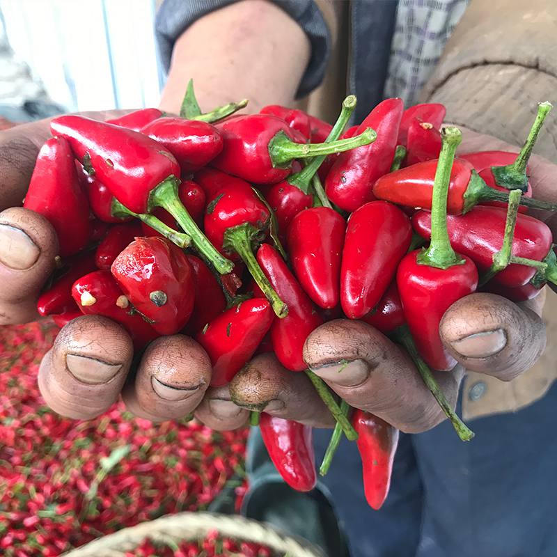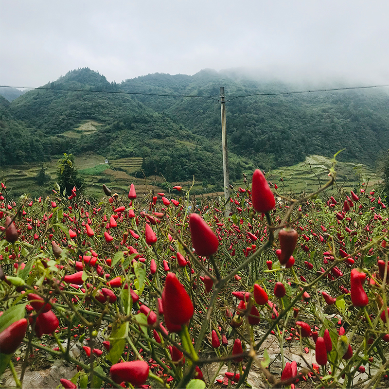 贵州属于山区,我们优选的基地海拔在1200米的山尖尖上,土地干净,环境非常好。因海拔高,昼夜温差大,这里的辣椒要比山脚下的生长周期多20来天!