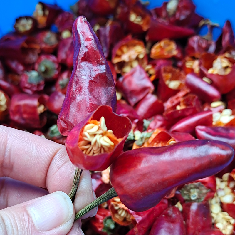 【贵州干辣椒&辣椒面&油泼辣椒】选用的子弹头,是朝天椒的一种,因其“品味温醇、香辣协调”,成为辣椒界的“傲骄”。