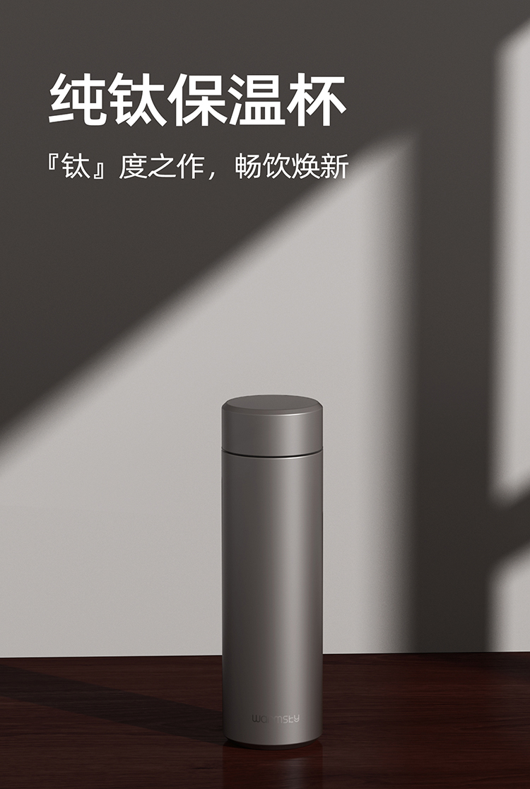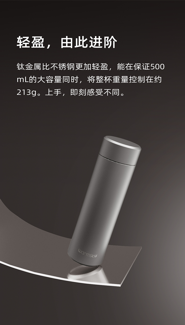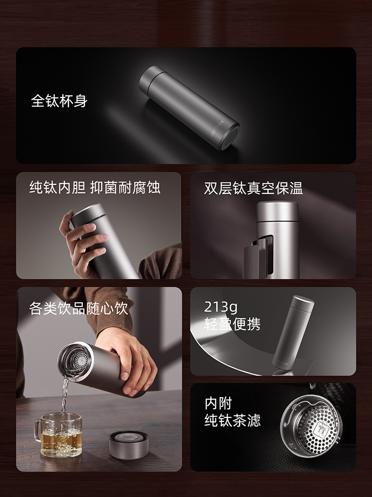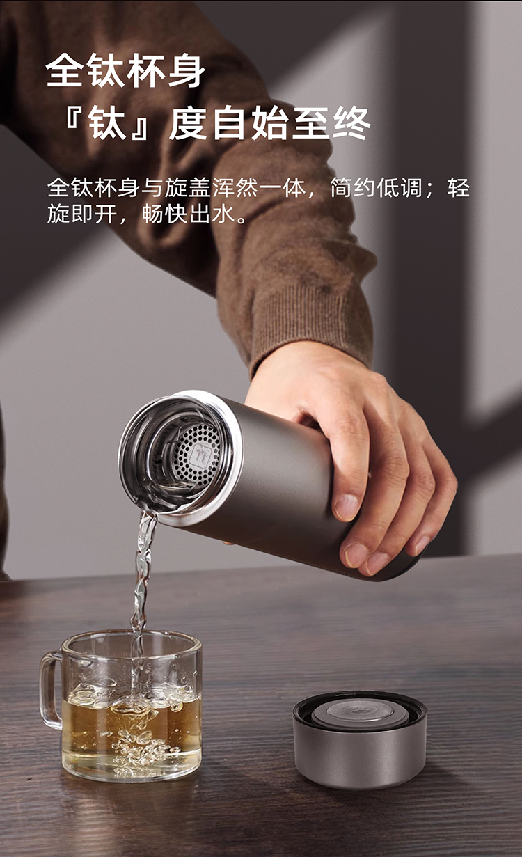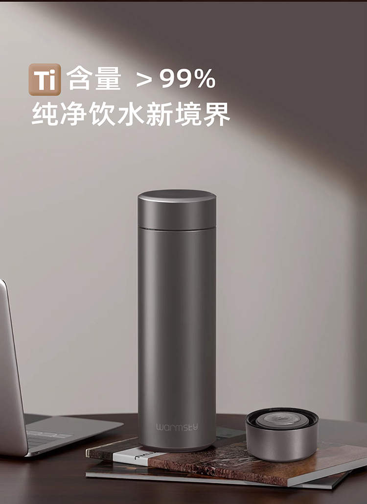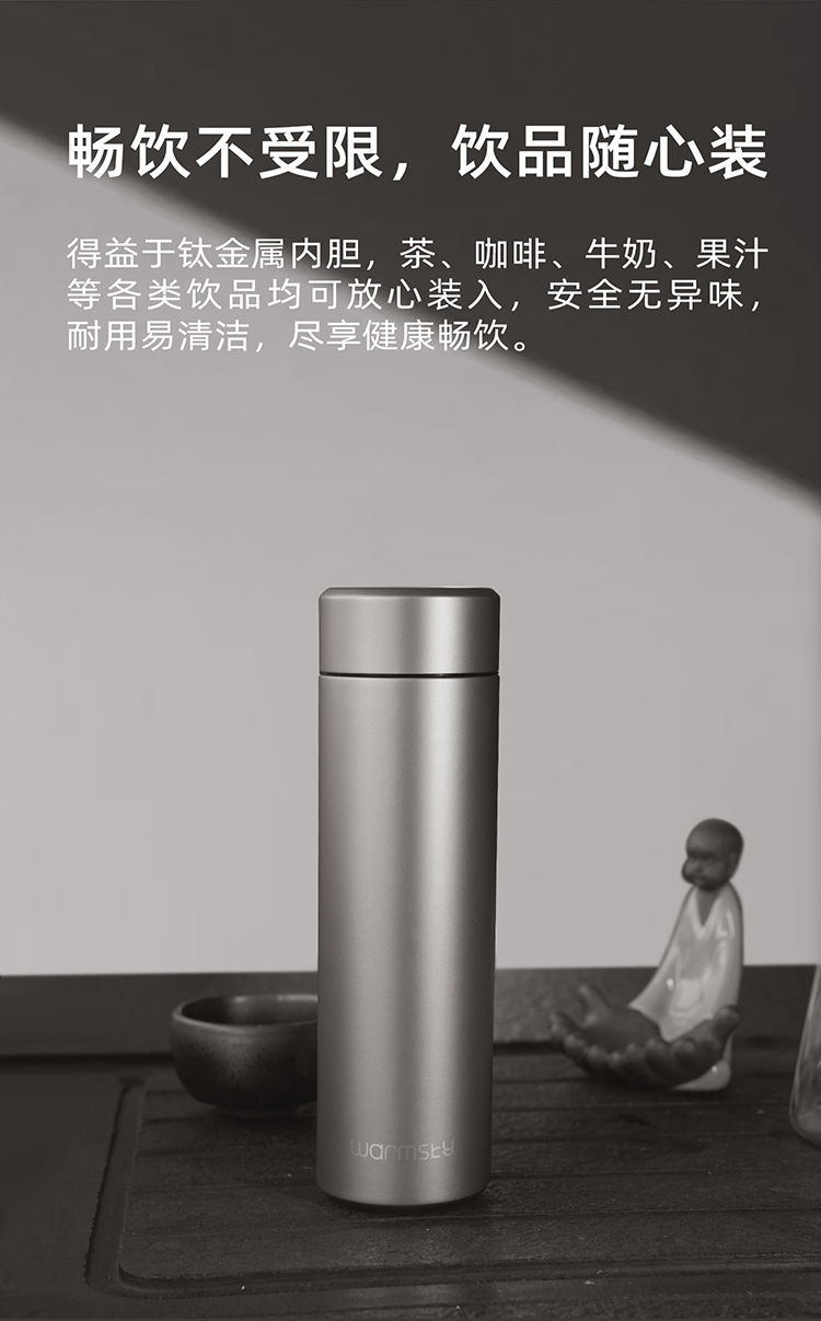 WARMSKY双层纯钛保温杯茶水分离杯 抗菌99%大容量便携杯子高档送礼水杯钨岩灰 500ml