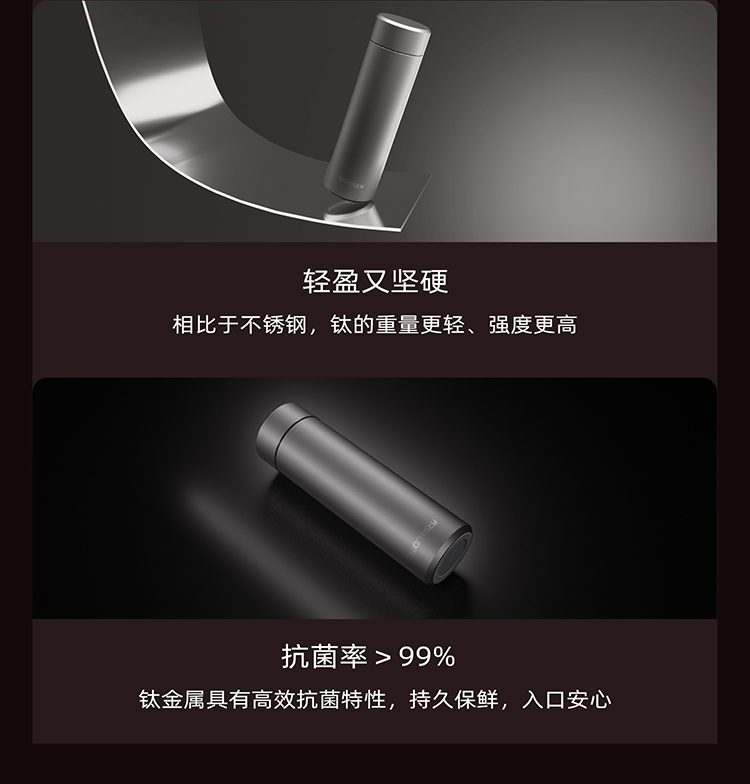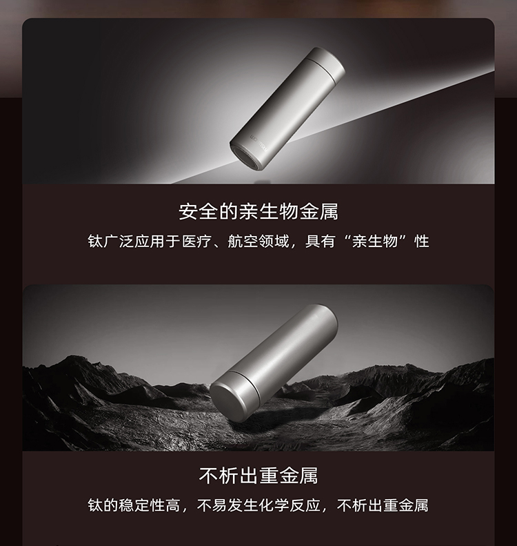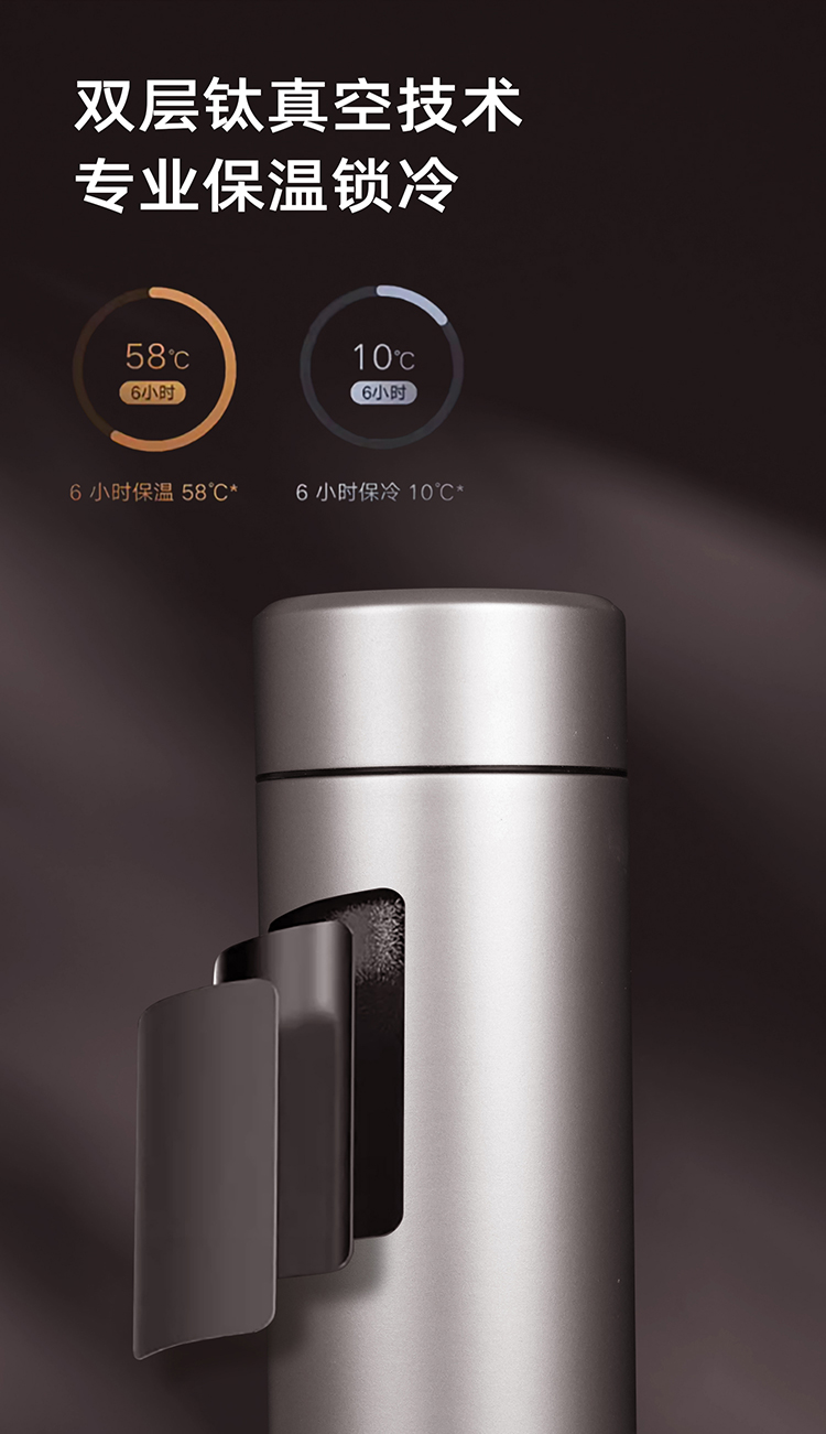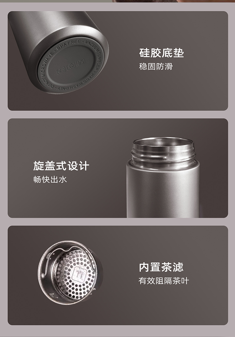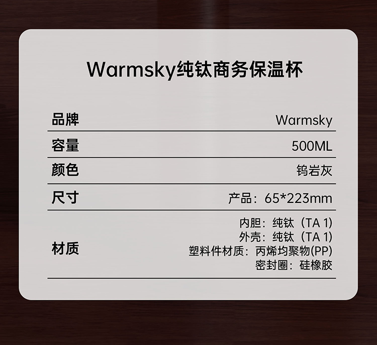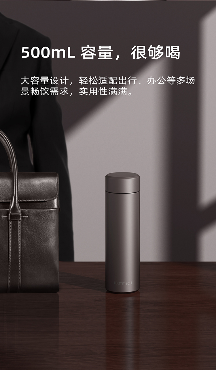 WARMSKY双层纯钛保温杯茶水分离杯 抗菌99%大容量便携杯子高档送礼水杯钨岩灰 500ml