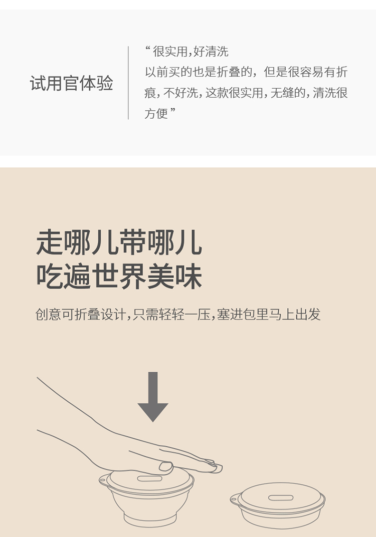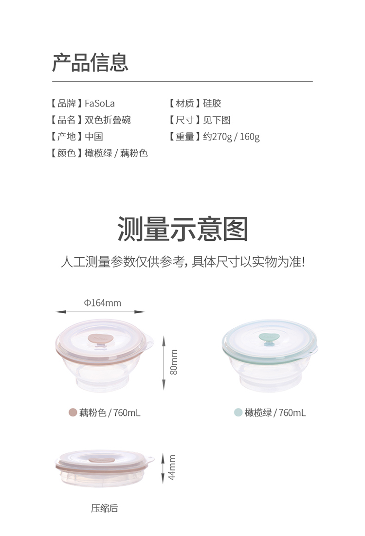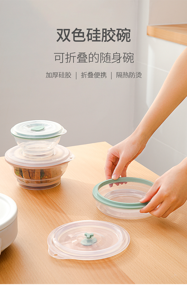 FaSoLa便携旅行硅胶折叠碗带盖泡面碗伸缩耐热户外野餐具旅游碗