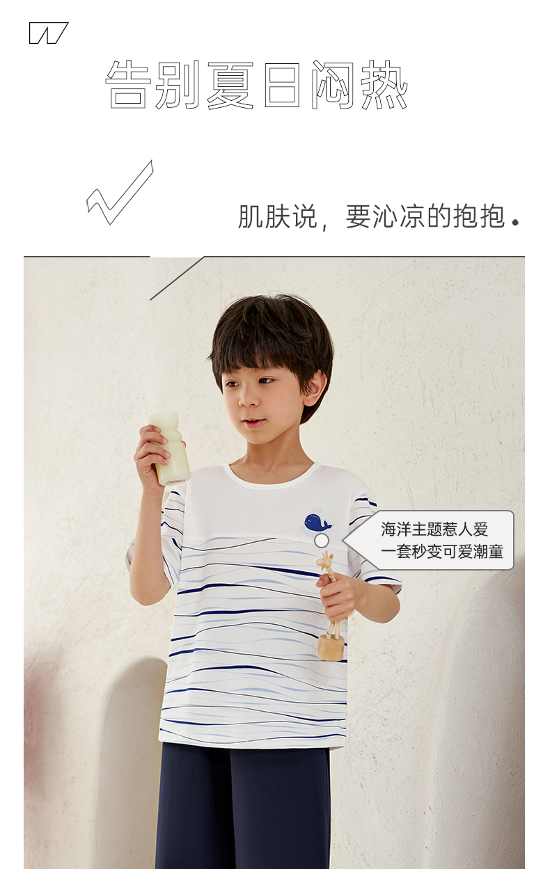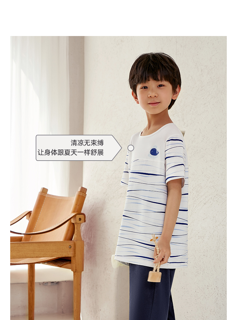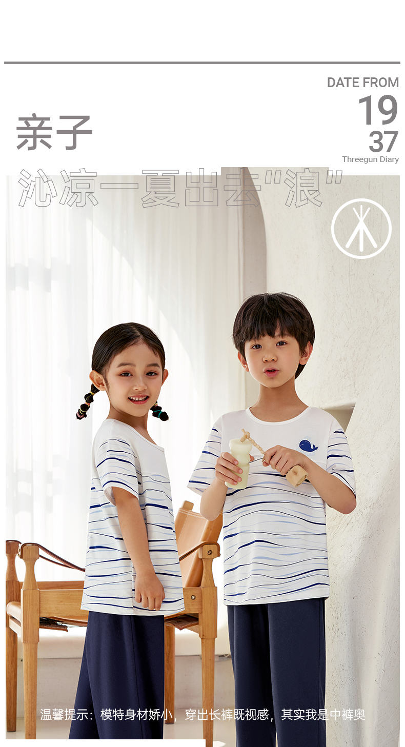 Threegun三枪 【舒感棉】圆领短袖中裤少儿家居套儿童家居服-82047D011