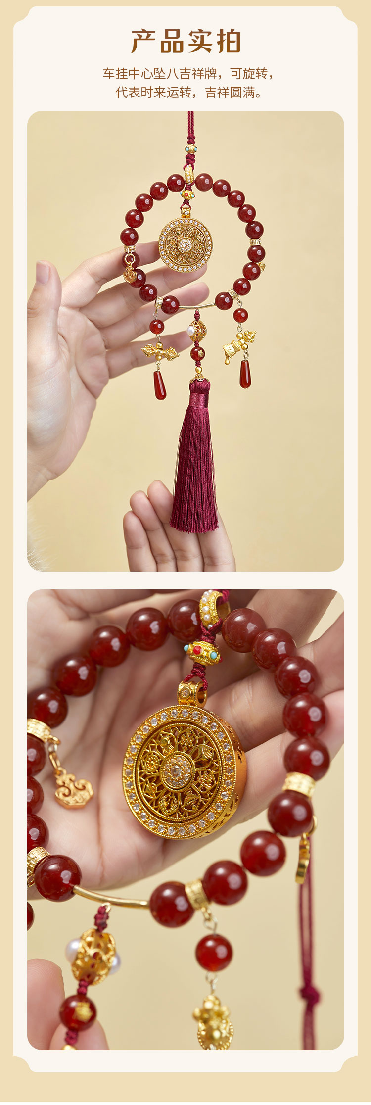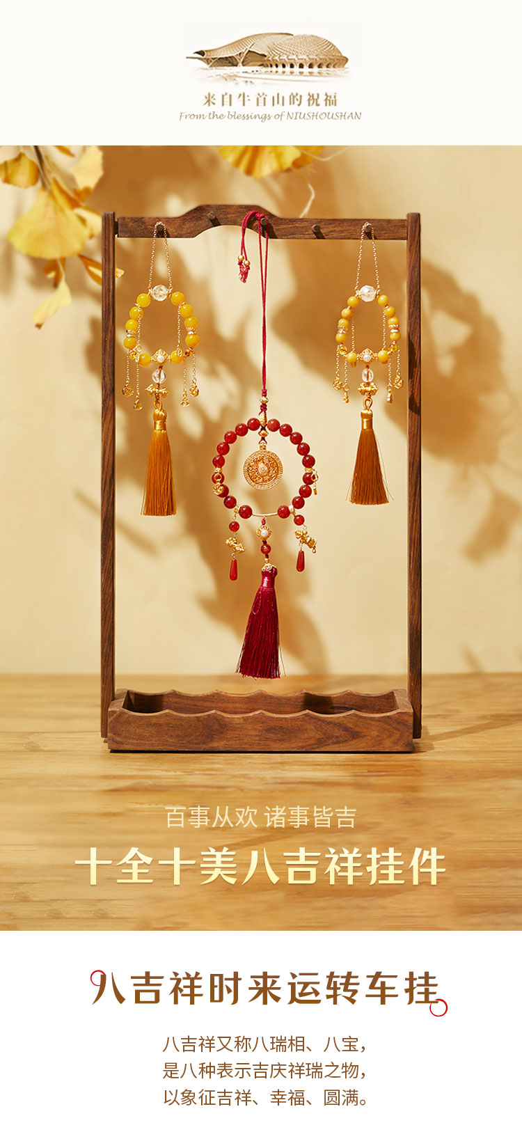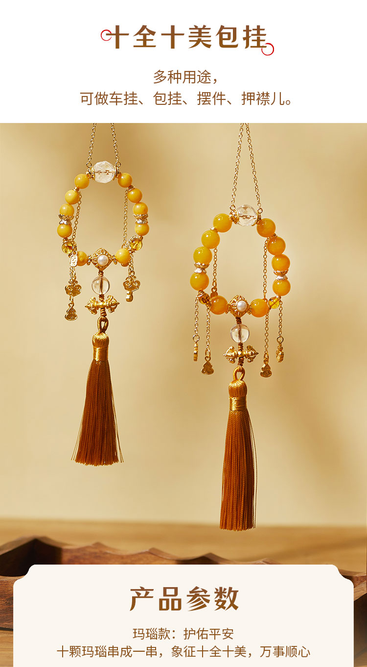 牛首山十全十美八吉祥挂件玛瑙蜜蜡告示压襟儿车挂礼品送领导长辈