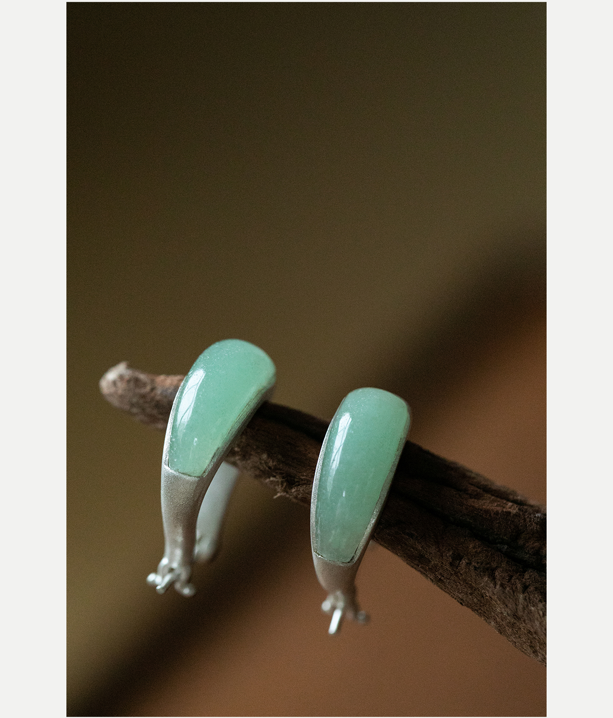 牧衣游 文艺复古百搭精致S925银东陵玉耳环 星眠【不支持会员折】