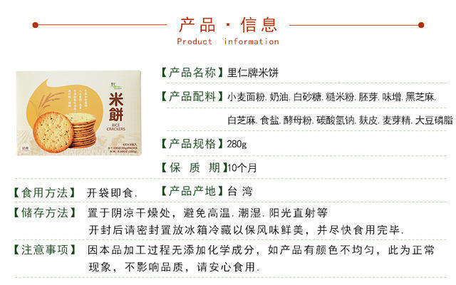 【里仁】糙米米饼280g/盒 漂洋过海 只为你一口心安 杂粮饼干