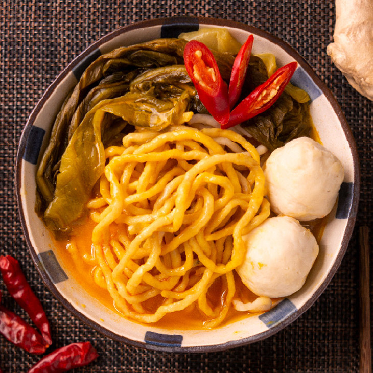 酸辣味、冬阴功味、咖喱味、香辣味都是在鱼骨高汤的基础上加了食用调味料和新鲜的柠檬叶、香茅叶等食材熬制而成的。