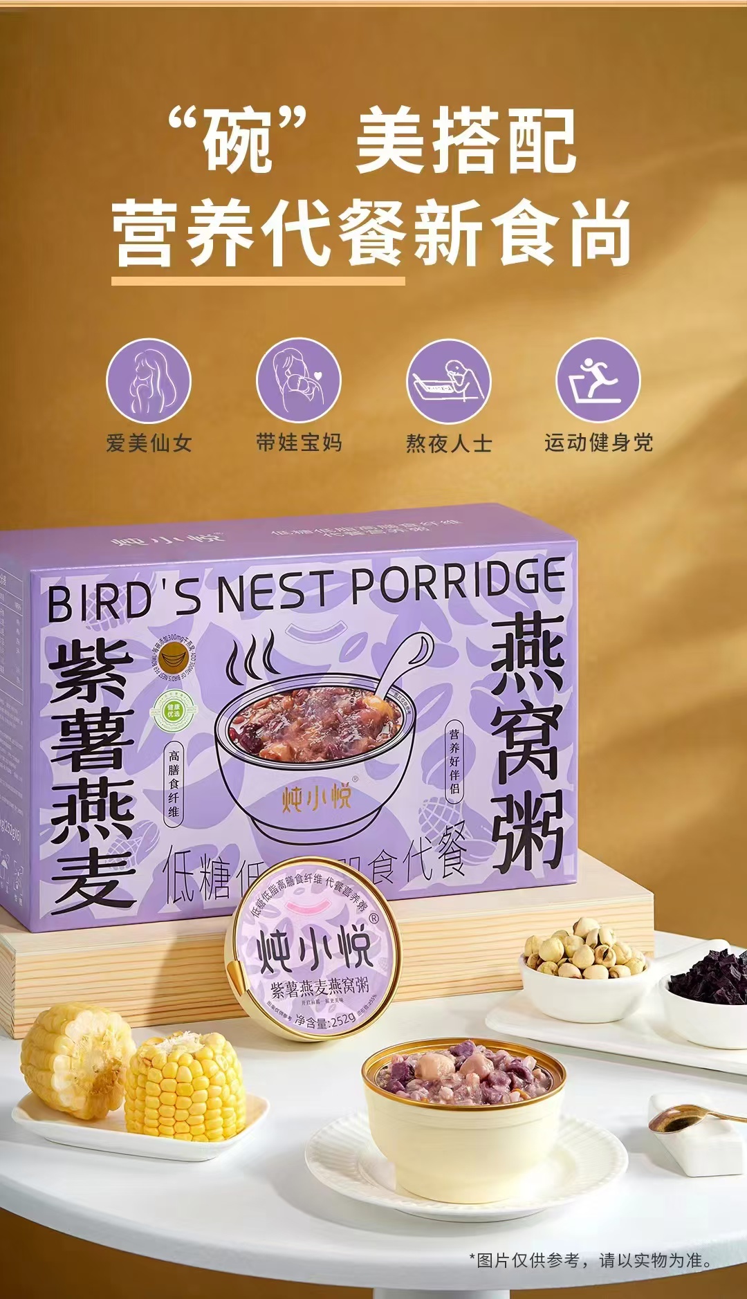 炖小悦丨紫薯燕麦燕窝粥 252g*6碗/箱