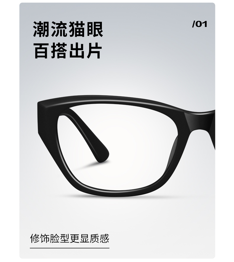 普莱斯光学镜框PBG24032A 摩登时尚猫眼镜框 优质板材 宽边镜框高度数配镜更美观 男女同款 三色可选
