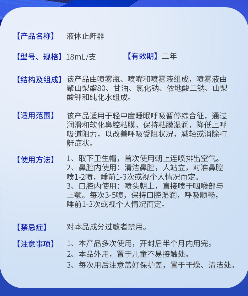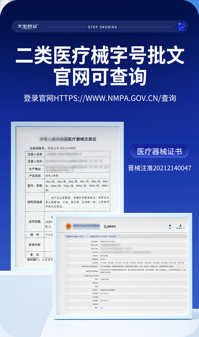 天宝药业液体止鼾器适用于睡眠呼吸暂停综合症呼吸受阻官方正品