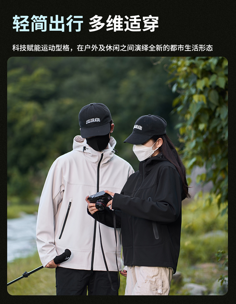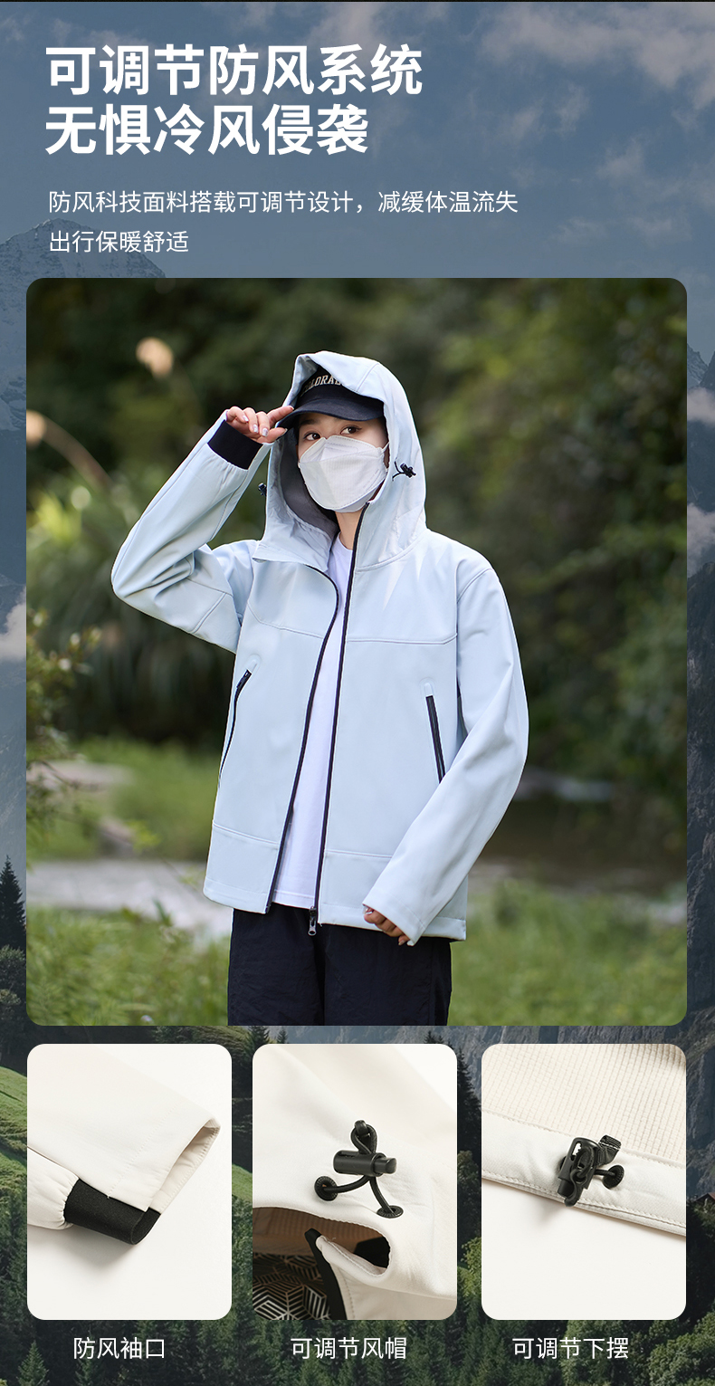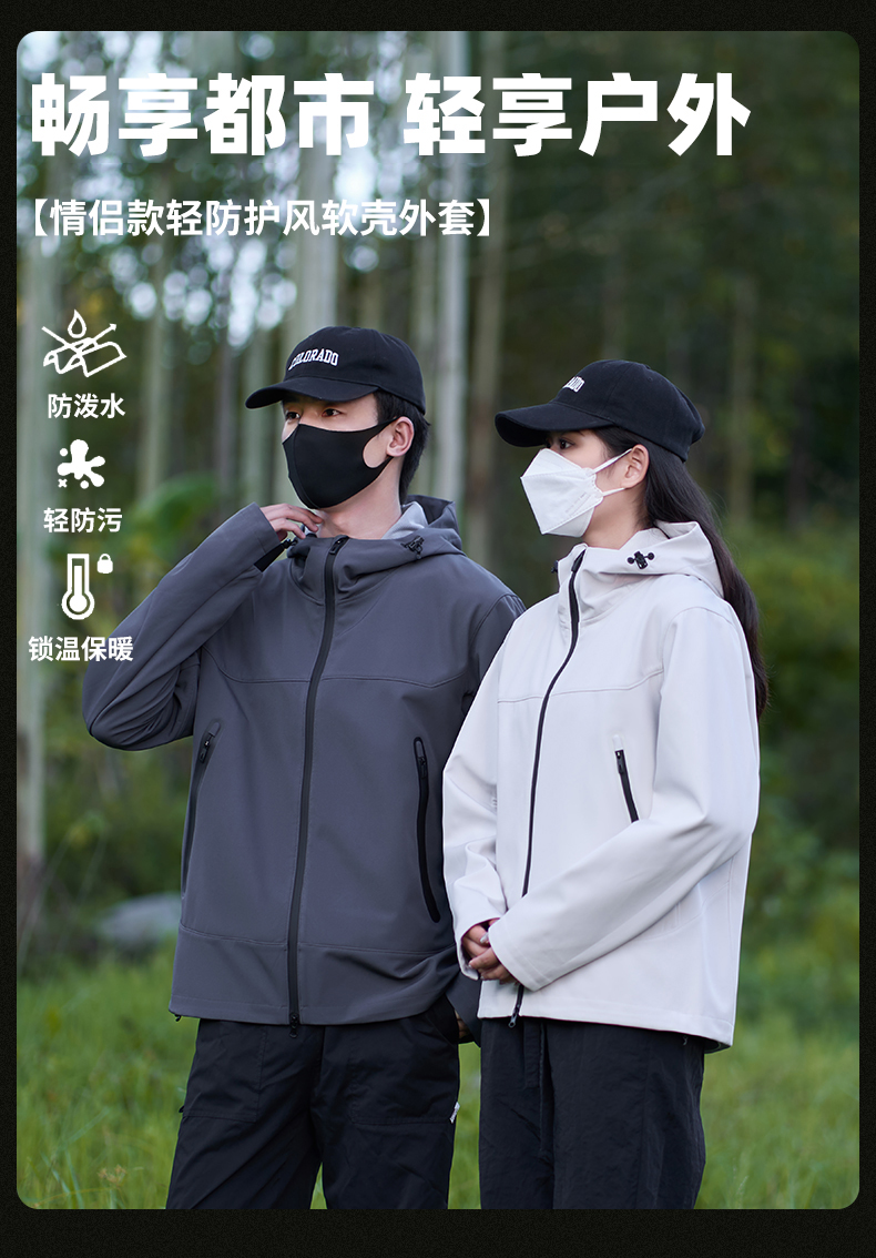 幸运鹿情侣款保暖三防连帽鸟家平替石墨烯软壳外套