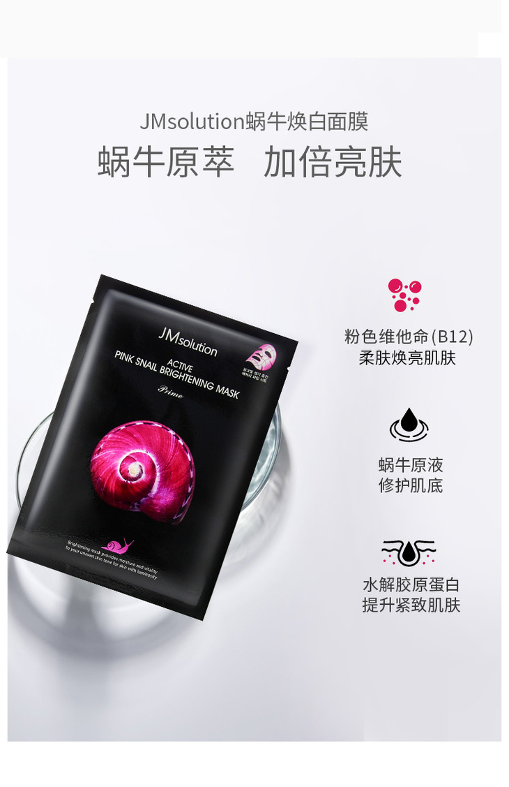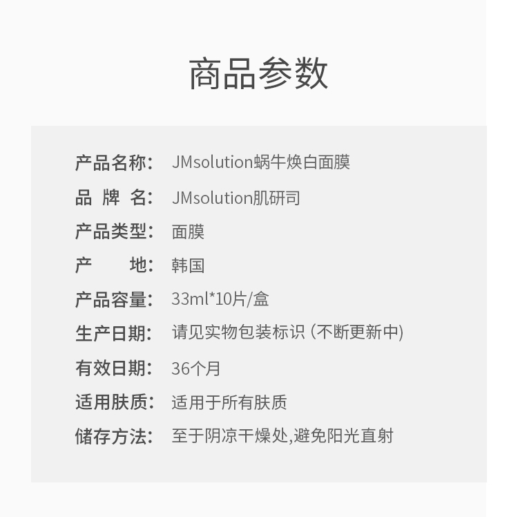 韩国JM蜗牛原液补水焕白保湿面膜 10片/盒